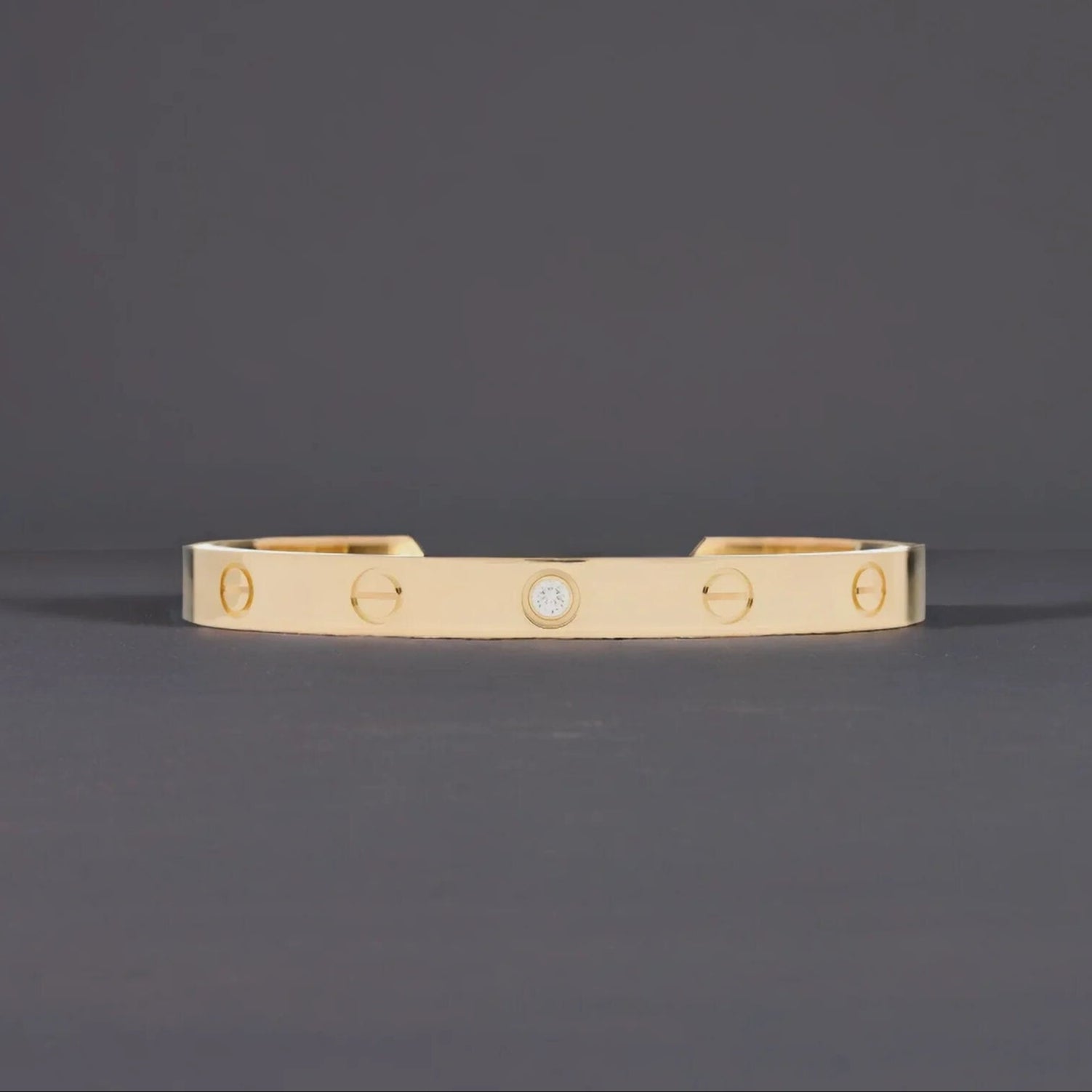 18K Yellow Gold 1 Diamond LOVE Cuff Bracelet 16