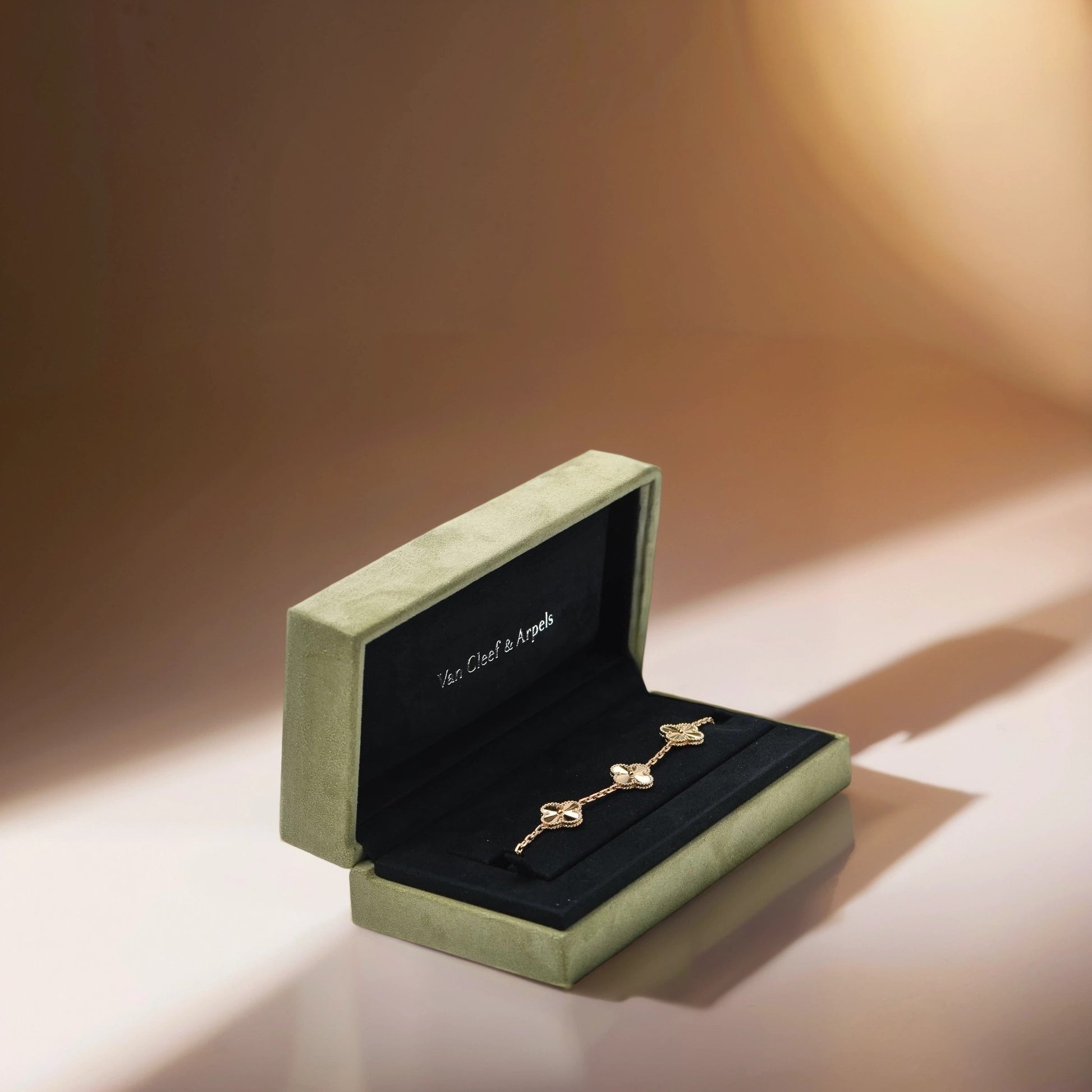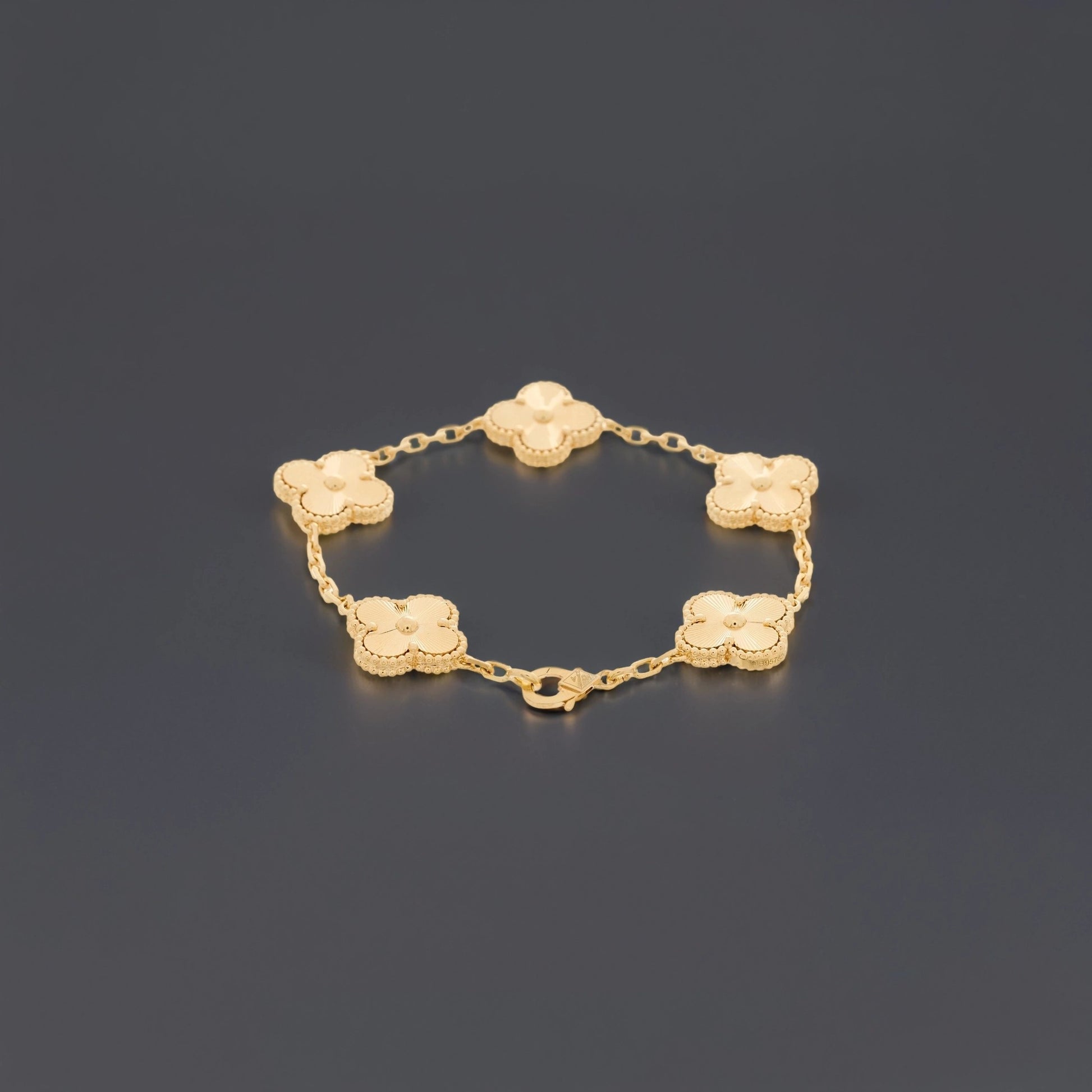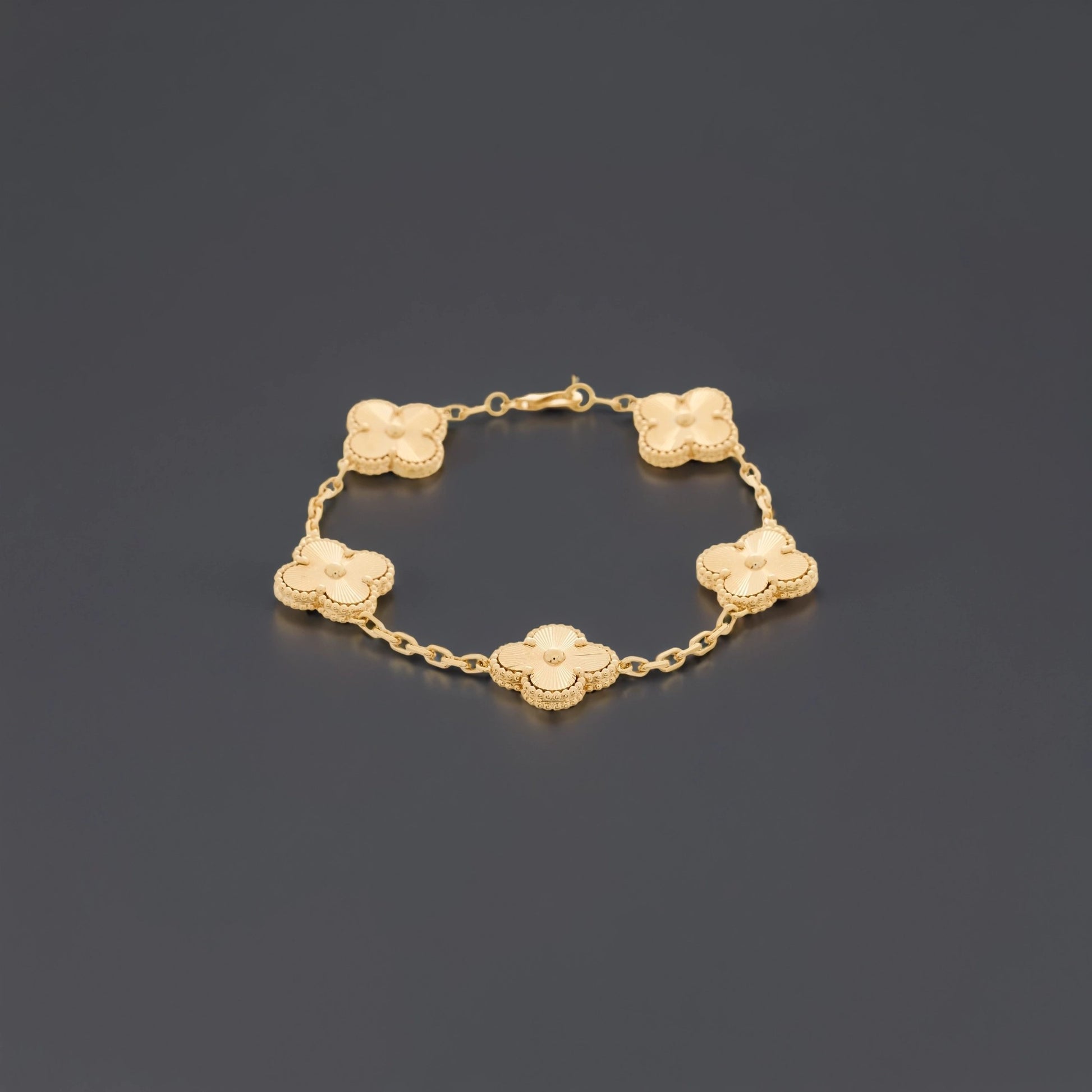 18K Yellow Gold 5 Motifs Guilloche Vintage Alhambra Bracelet