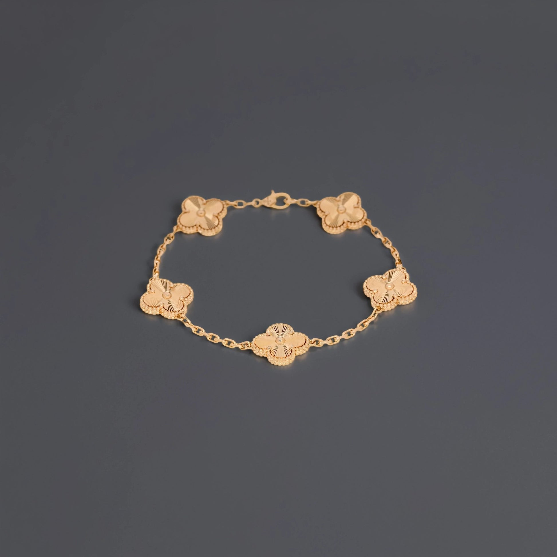 18K Yellow Gold 5 Motifs Guilloche Vintage Alhambra Bracelet