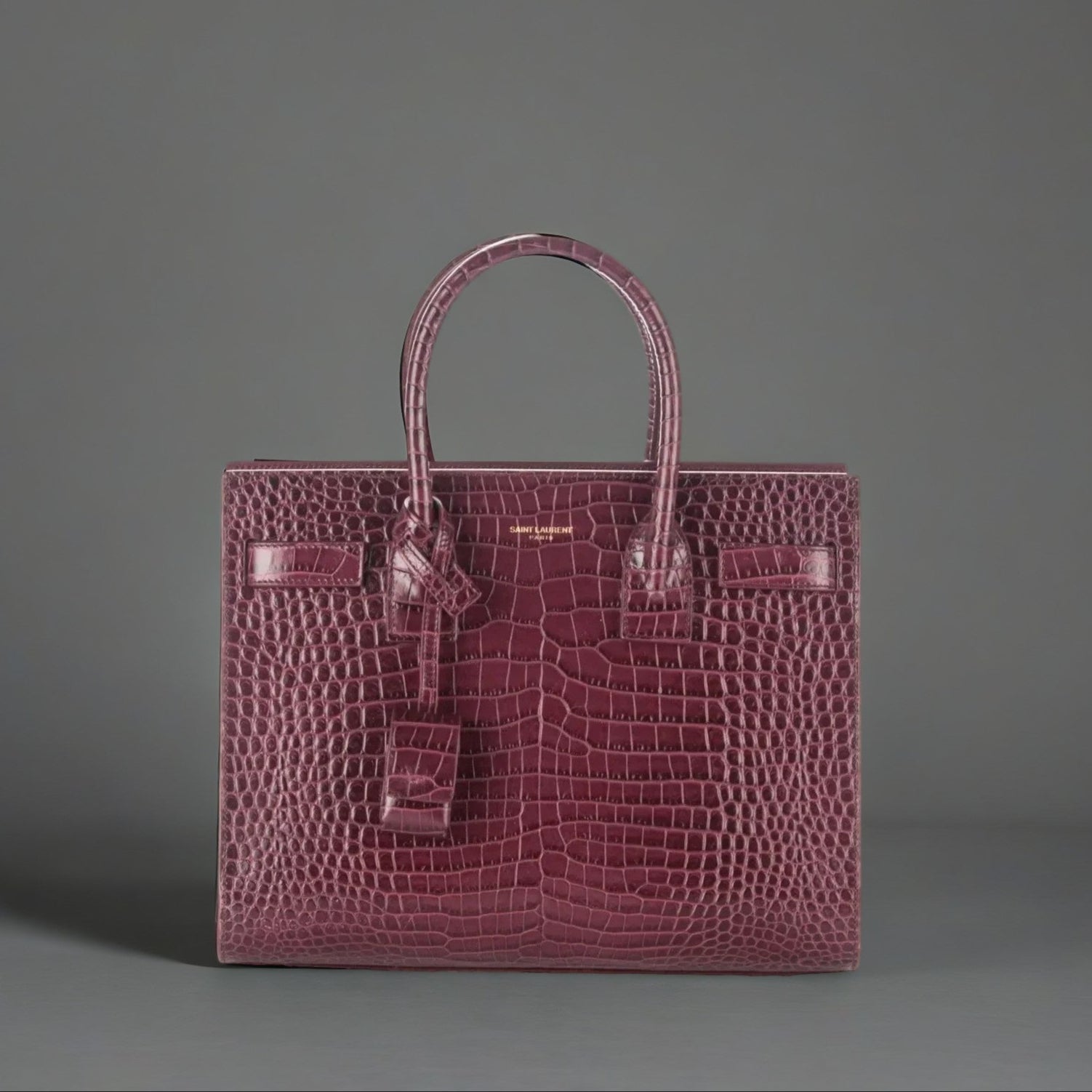 Calfskin Crocodile Embossed Baby Sac De Jour Bordeaux