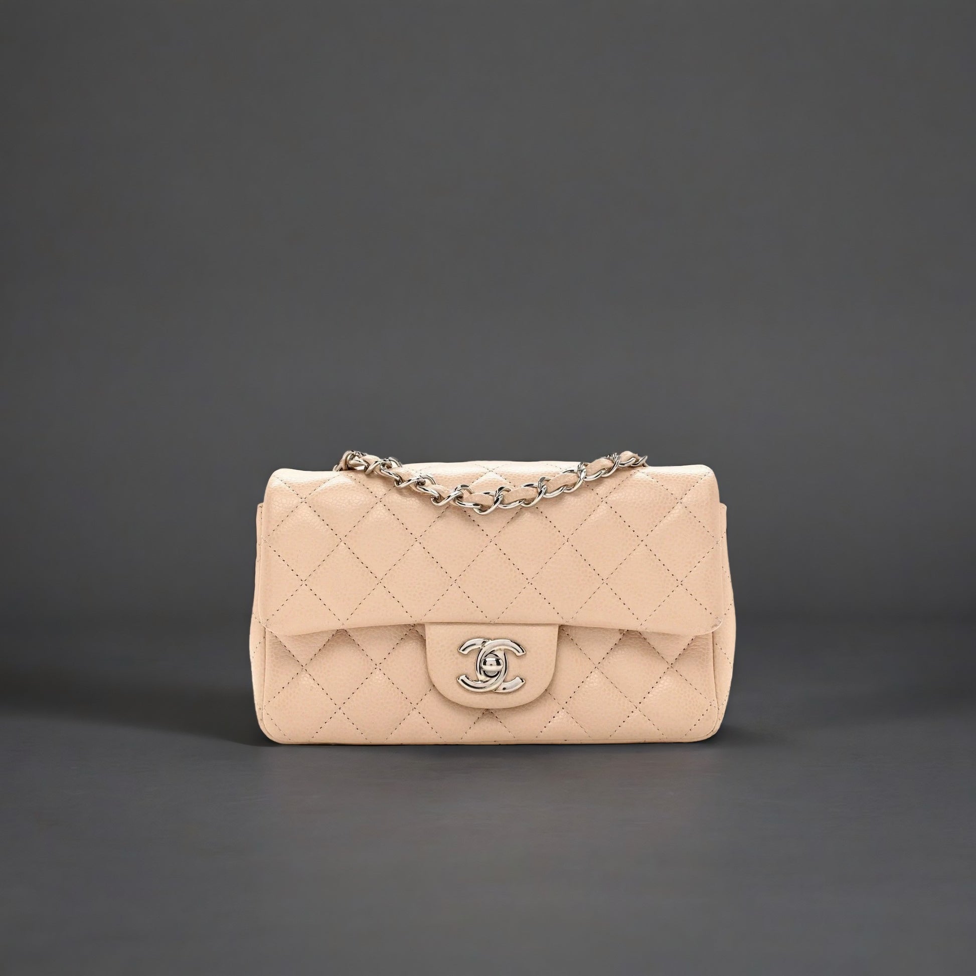 Caviar Quilted Mini Rectangular Flap Light Beige