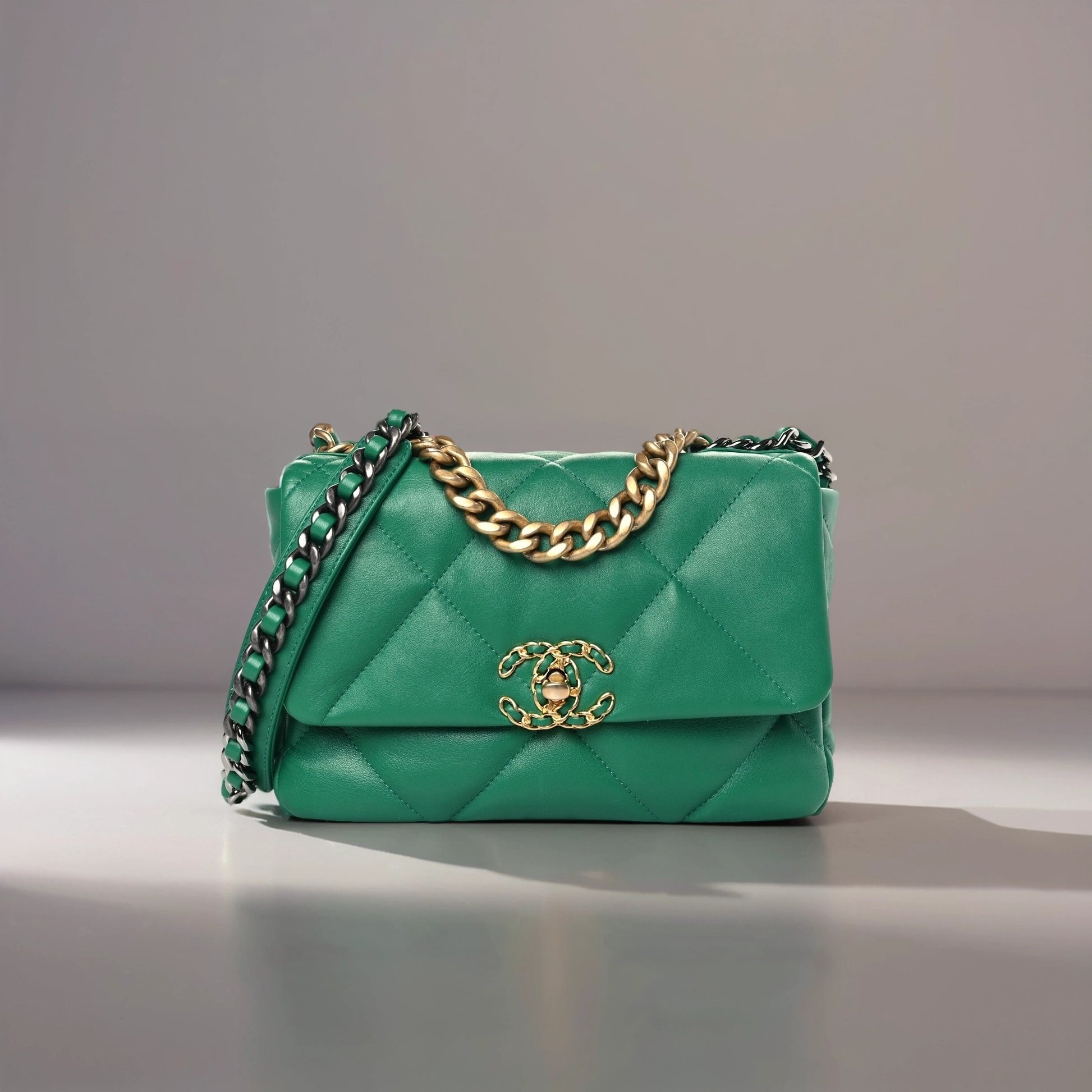 Lambskin Quilted Medium Chanel 19 Flap Green