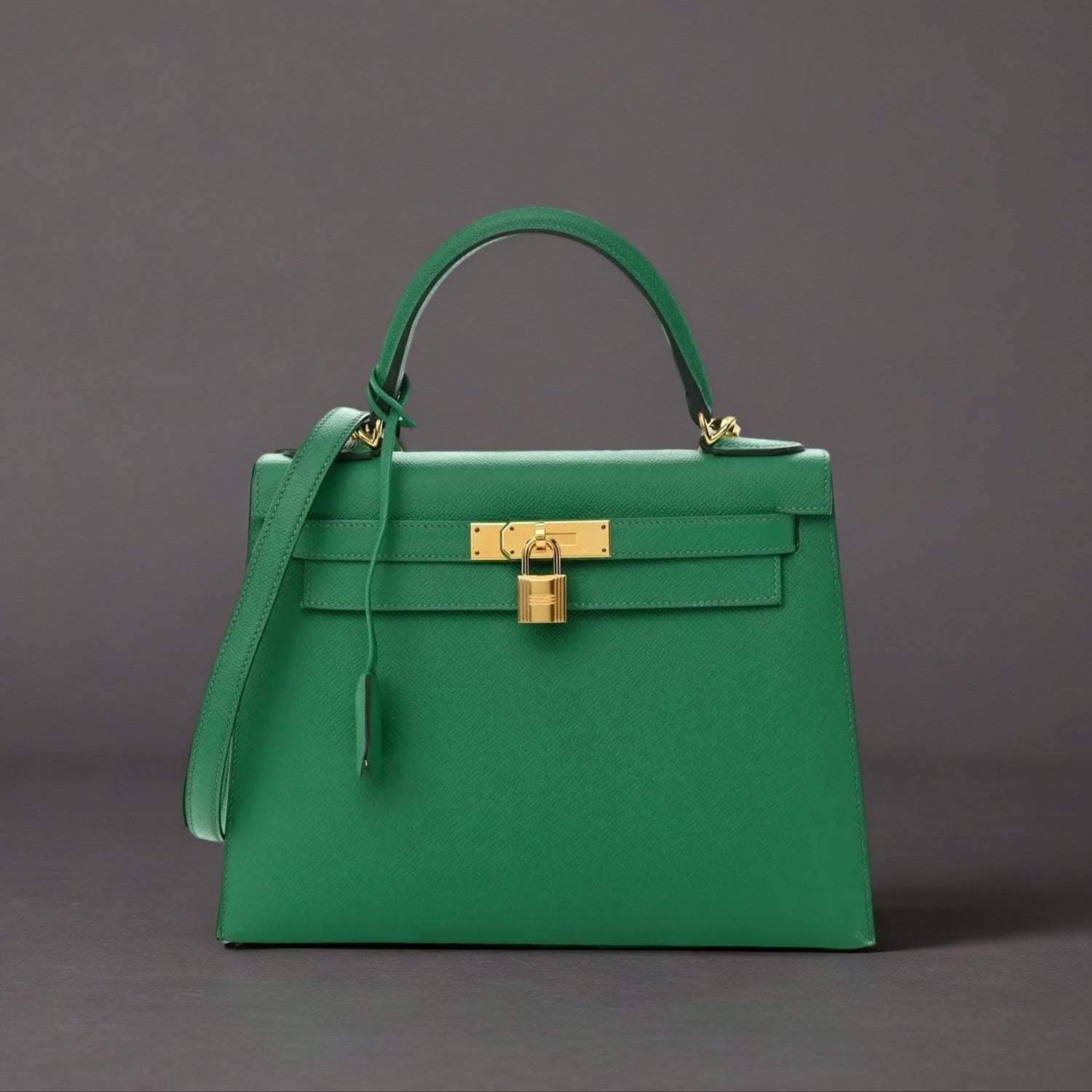 This is an authentic HERMES Epsom Kelly Sellier 28 in Cactus. This Hermes classic handbag is crafted of stamped Epsom calfskin leather in green. It features a single leather top handle, an optional leather shoulder strap and polished gold plated hardware. The traditional Kelly turn-lock secures the small flap with a padlock and a hanging leather key clochette accessorizes this handbag. The interior features a single flat pocket as well as a zipped wide pocket, both in chèvre goatskin leather.