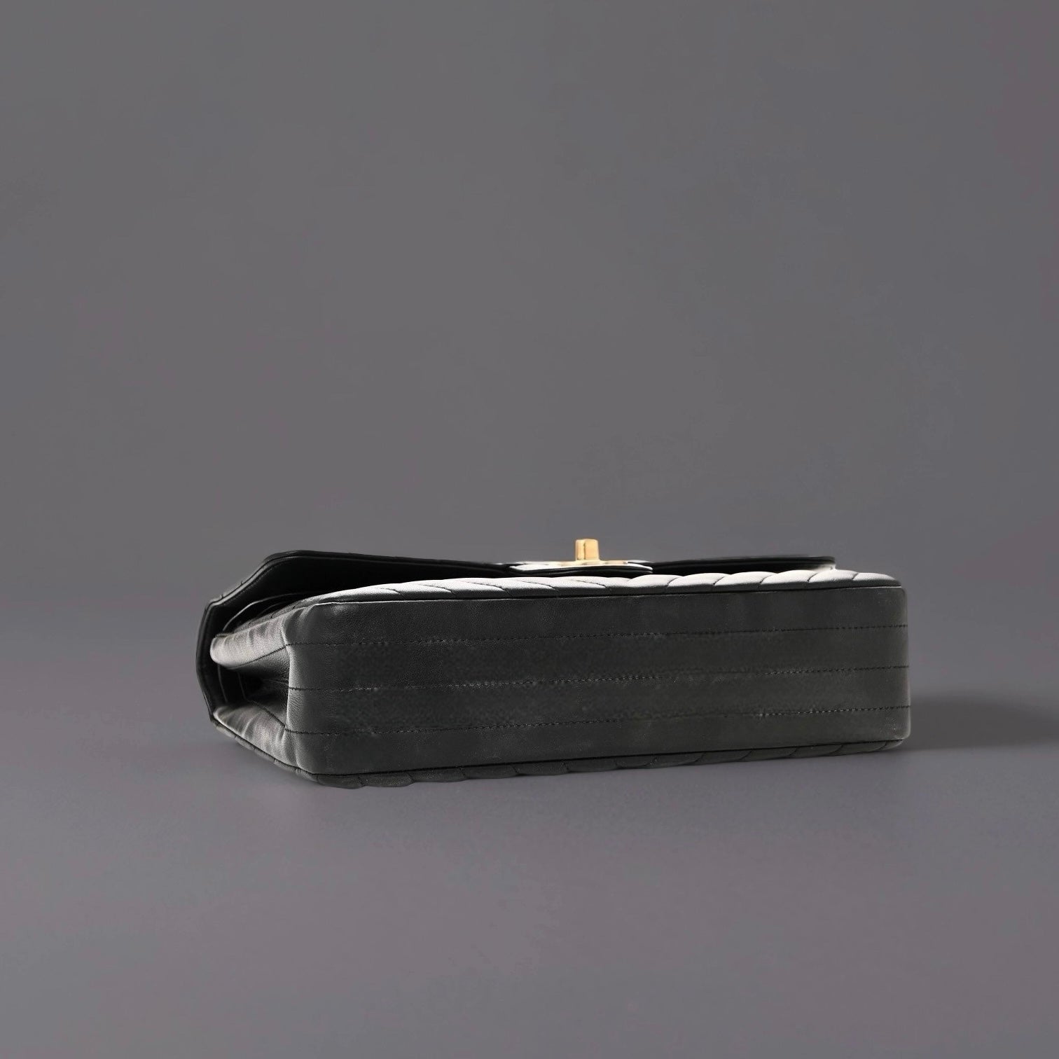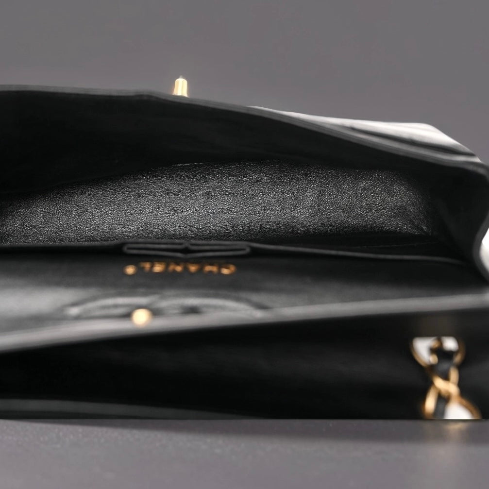 Lambskin Chevron Quilted Medium Double Flap Black