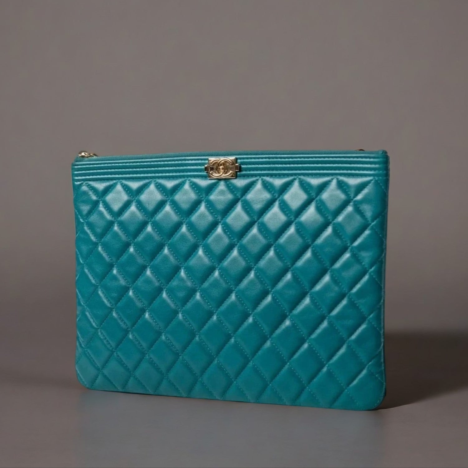 Lambskin Quilted Medium Boy Cosmetic Case Turquoise