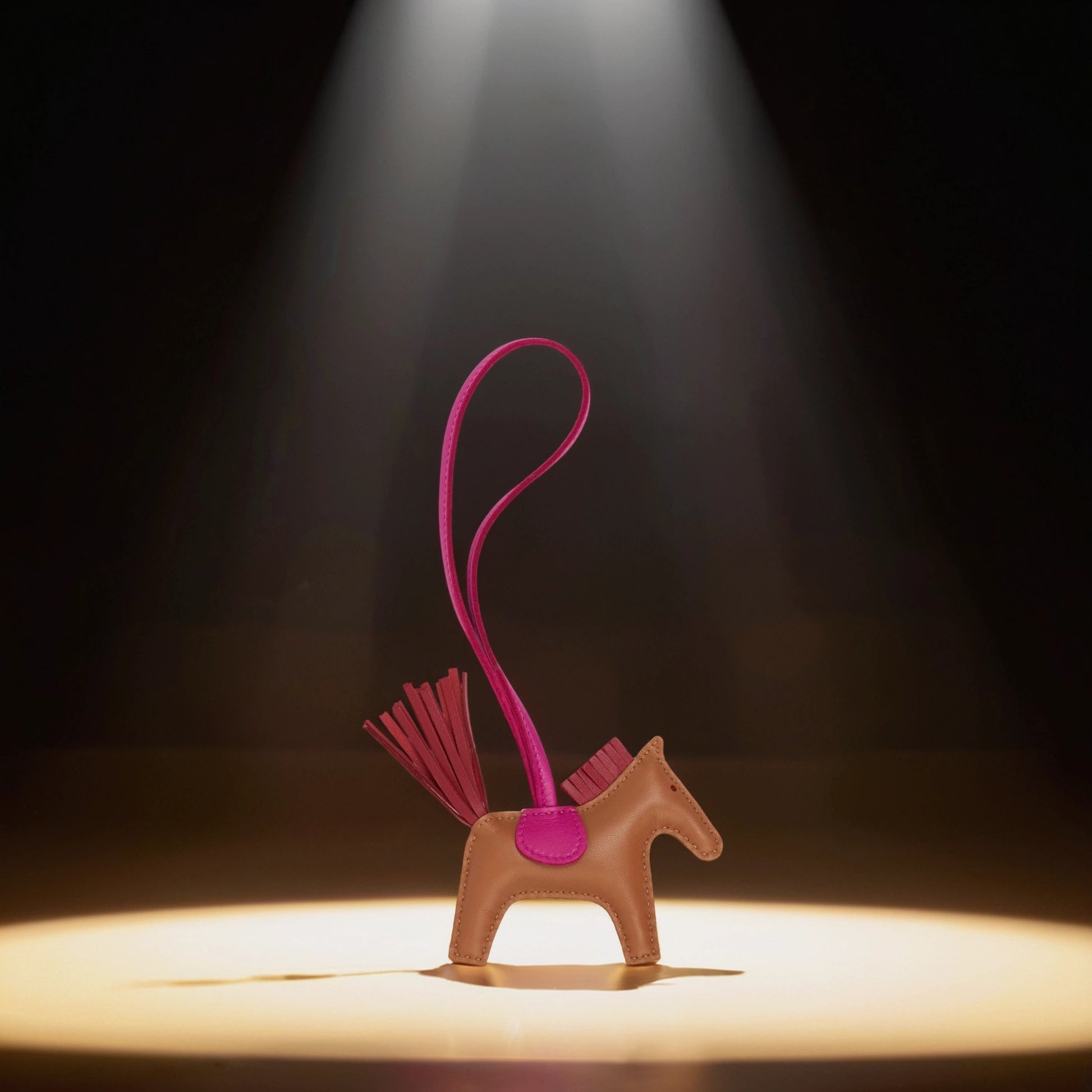 Milo Lambskin Grigri Rodeo Horse Bag Charm PM Gold Rubis Rose Poupre