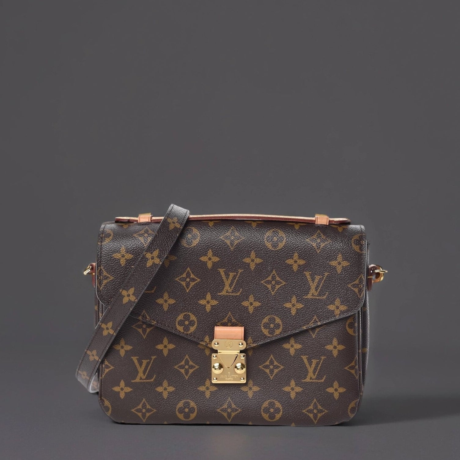 We guarantee this is an authentic LOUIS VUITTON Monogram Pochette Metis or 100% of your money back. This chic handbag is finely crafted of classic Louis Vuitton monogram on coated canvas. The shoulder bag features a vachetta cowhide leather handle, an optional adjustable monogrammed canvas shoulder strap, a rear exterior zipper pocket, and an envelope-style front flap, with a polished brass S-lock. The bag opens to a partitioned brown microfiber interior. This is the perfect messenger bag for everyday essentials, with style and luxury of Louis Vuitton!