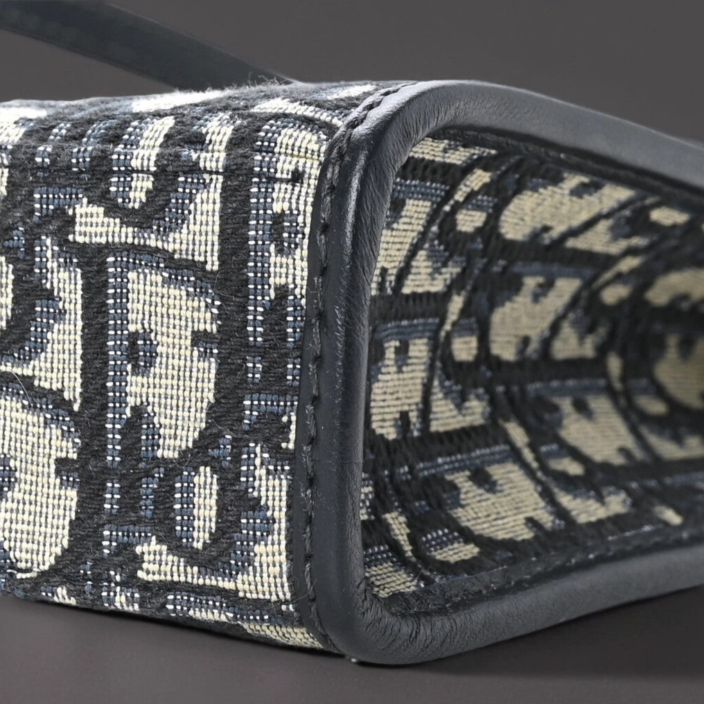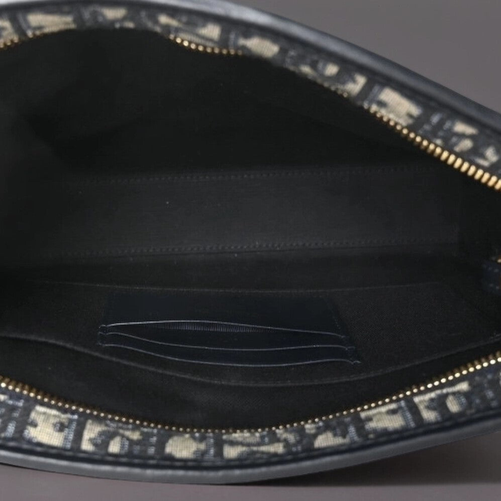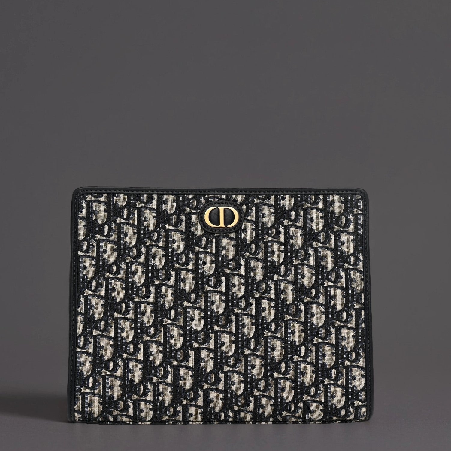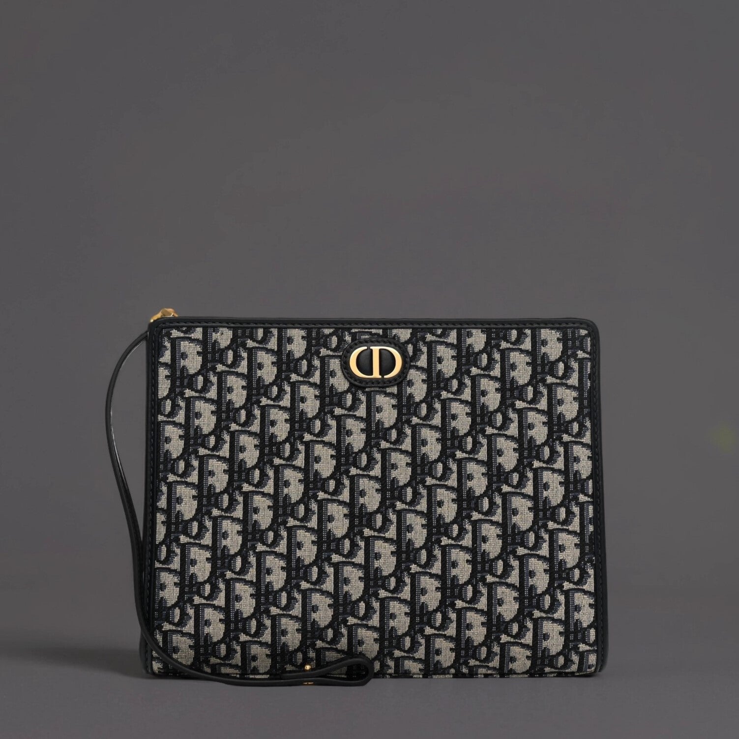 This is an authentic CHRISTIAN DIOR Oblique 30 Montaigne Pouch in Blue. This stylish beauty pouch is crafted of blue on beige Dior monogram canvas and features an antique gold finish "CD" signature on the front. The top zipper opens to a blue interior with a patch pocket and card slots.