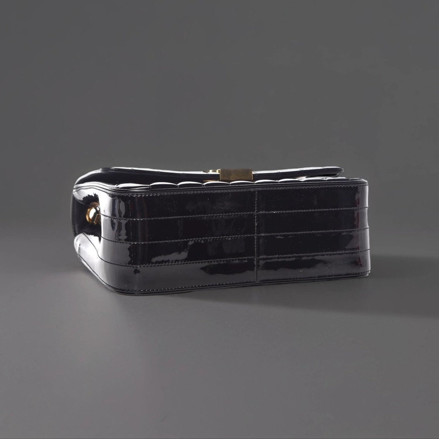 Patent Matelasse Monogram Large Vicky Chain Bag Black