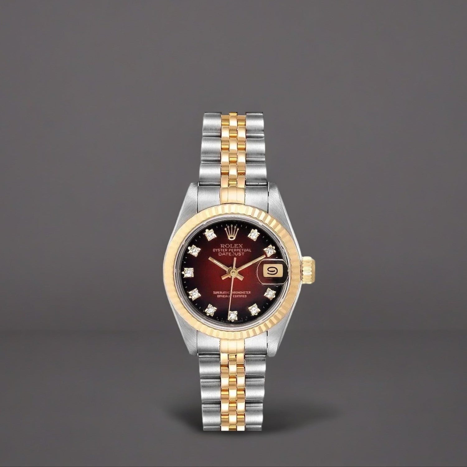 Rolex Datejust 26mm Steel Yellow Gold Red Vignette Diamond Watch