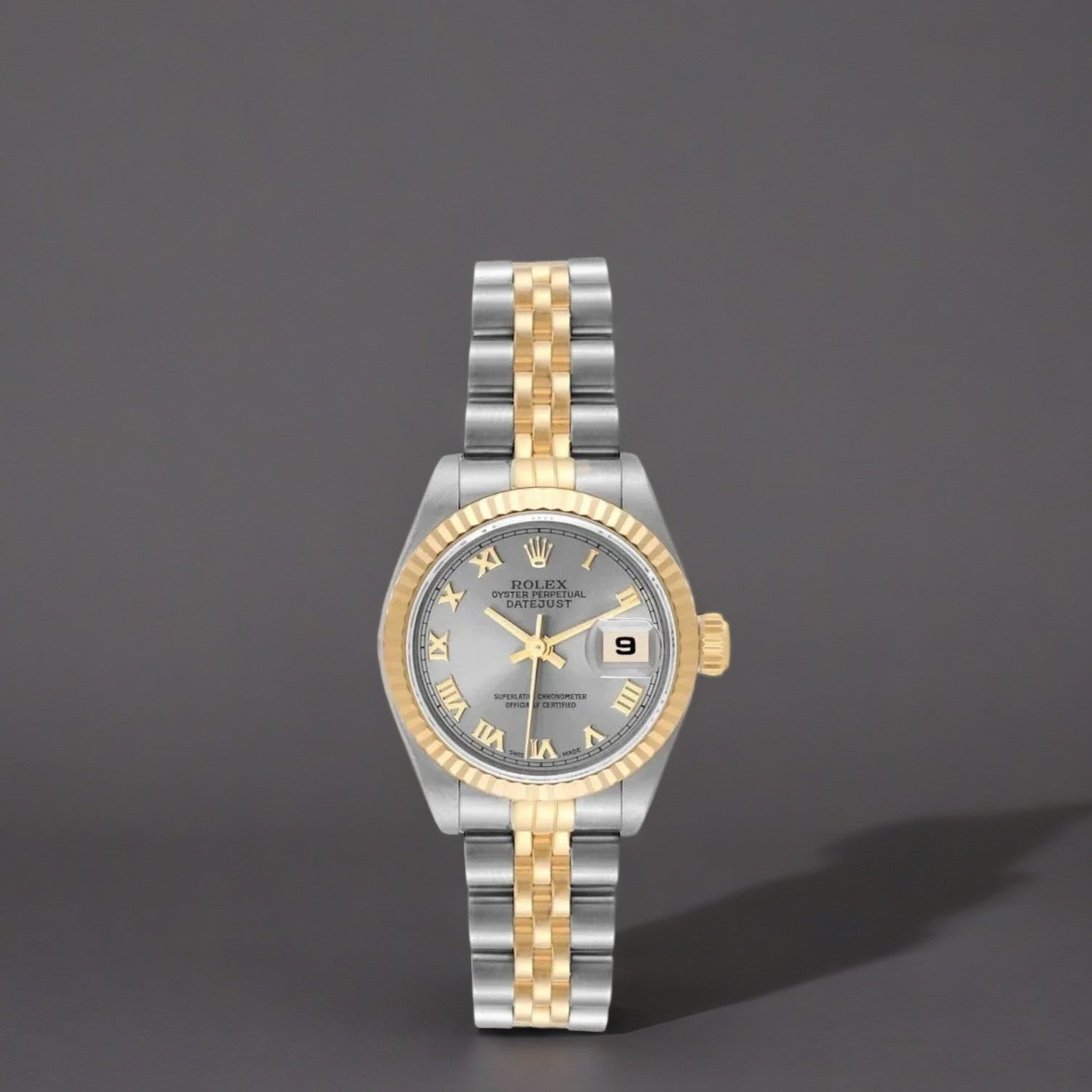 Rolex Datejust Steel 26mm Yellow Gold Slate Roman Dial Ladies Watch