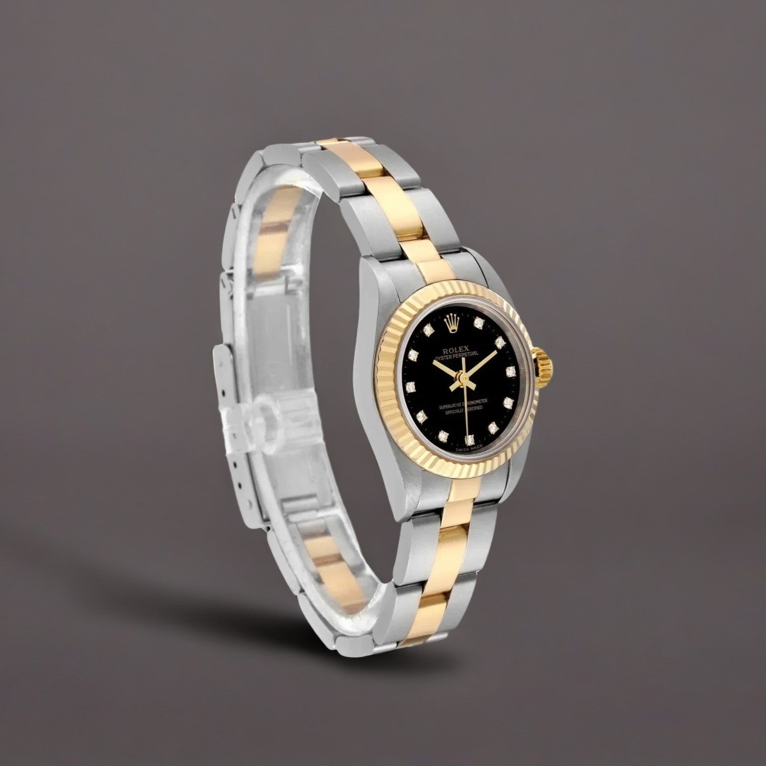 Rolex Oyster Perpetual Steel Yellow Gold Black Diamond Dial Watch