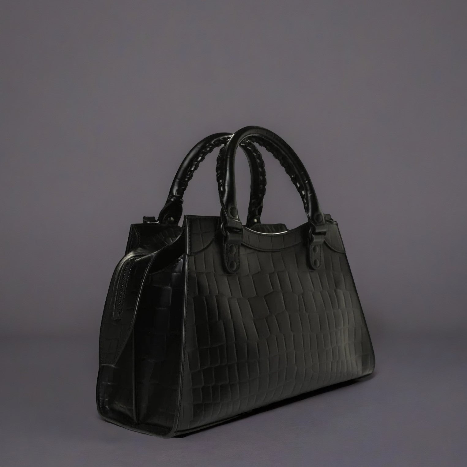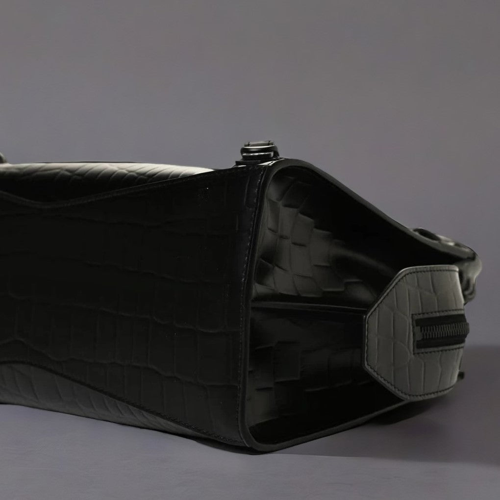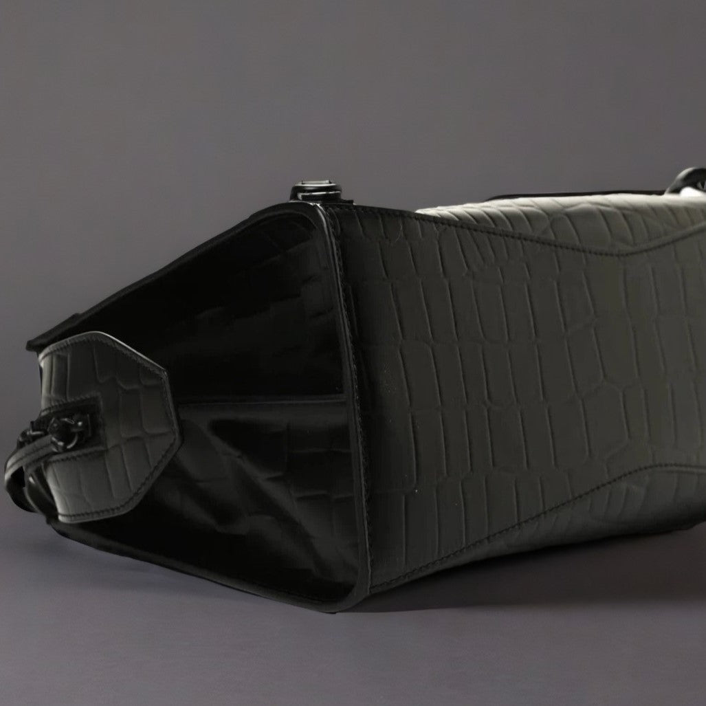 Semi Shiny Calfskin Crocodile Embossed Neo Classic Black Hardware S City Black