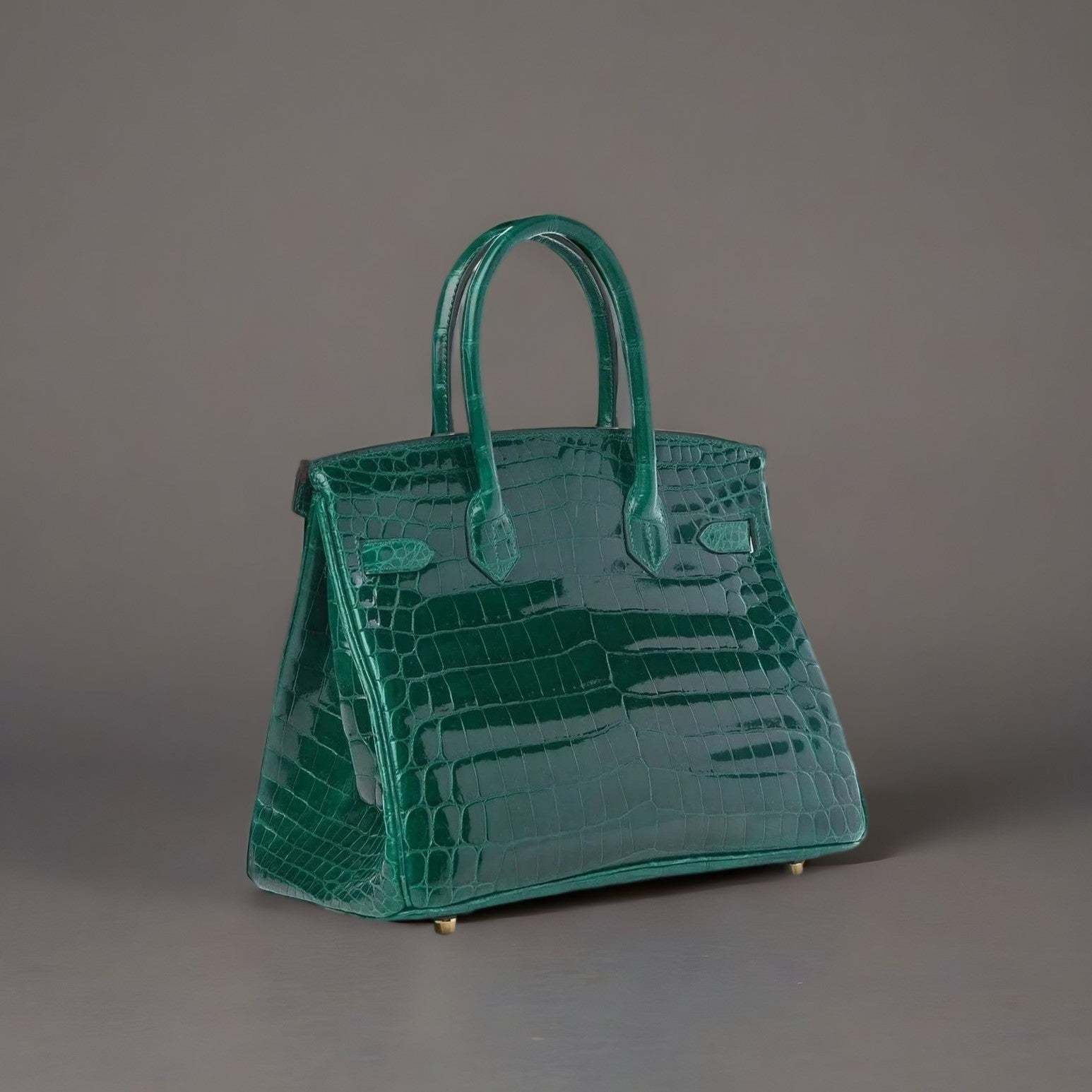 Shiny Niloticus Crocodile Horseshoe Birkin 30 Vert Emeraude Black