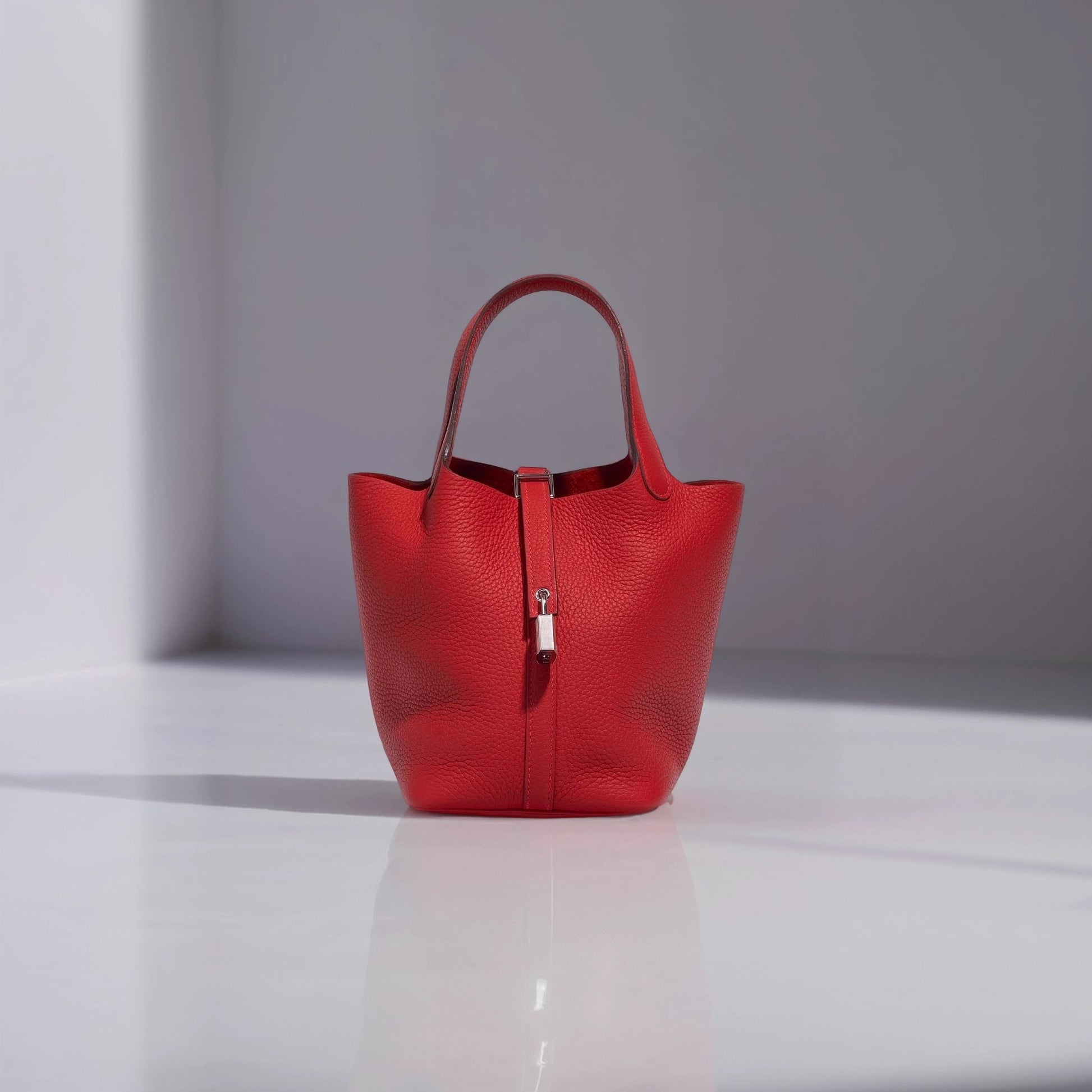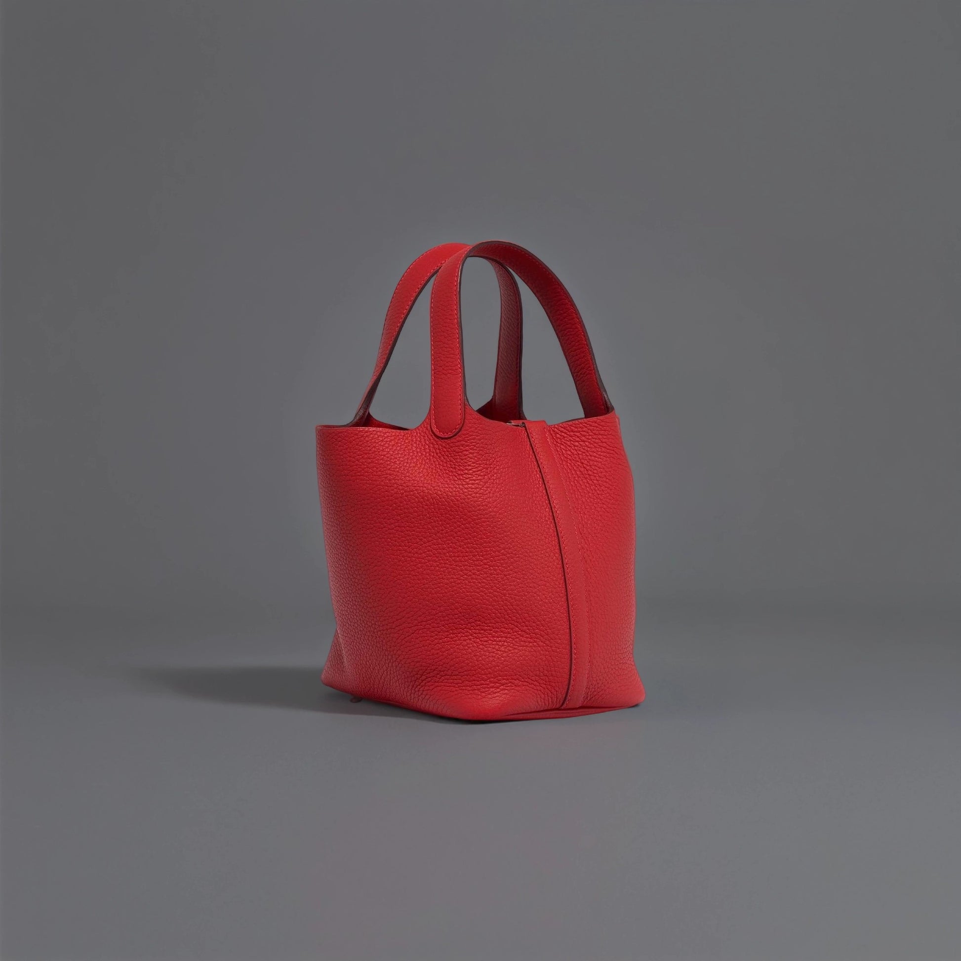 Taurillon Clemence Picotin Lock 18 PM Rouge Casaque
