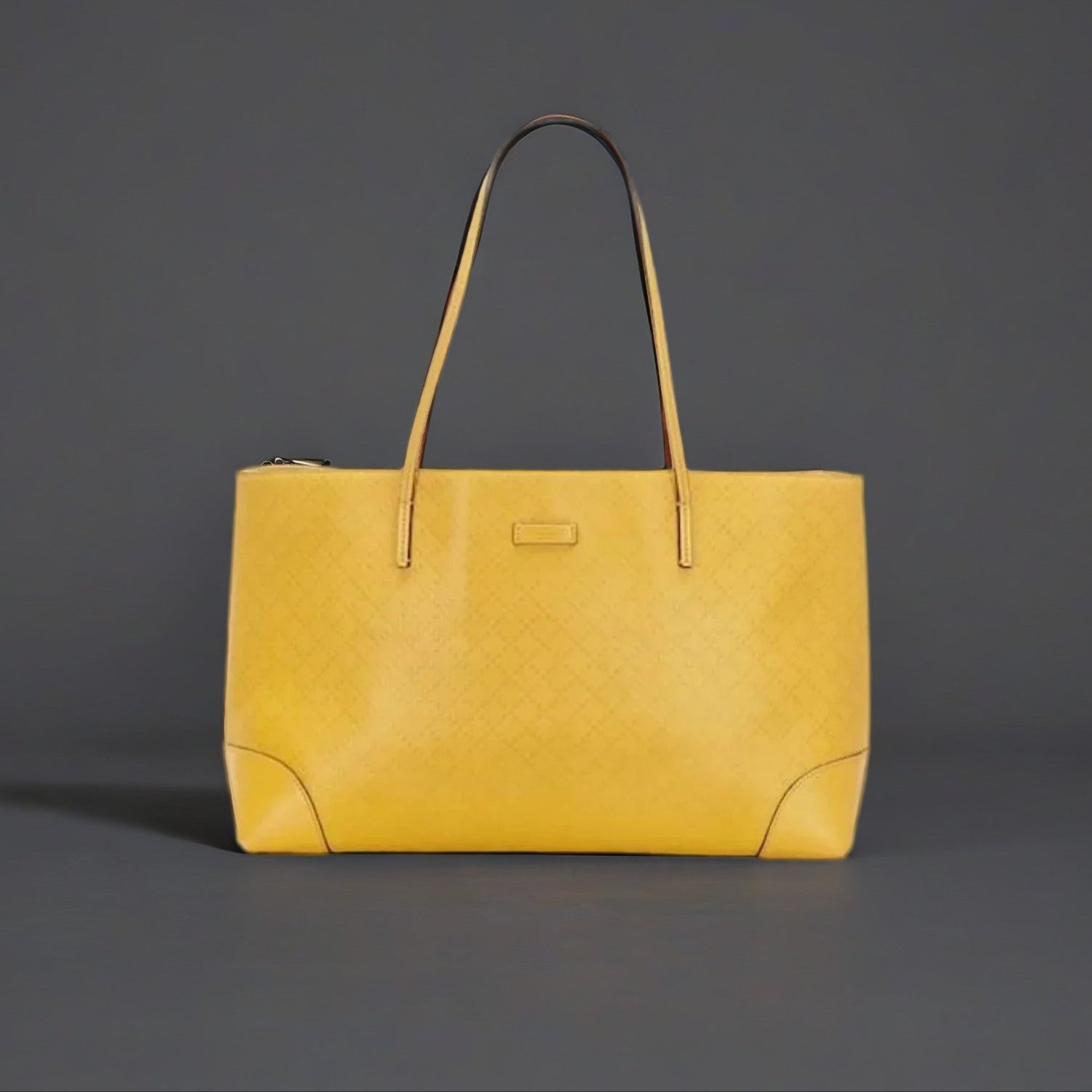 The Bright Diamante tote bag features a leather body, flat leather straps, an open top with a metal clasp closure, and interior zip and slip pockets.