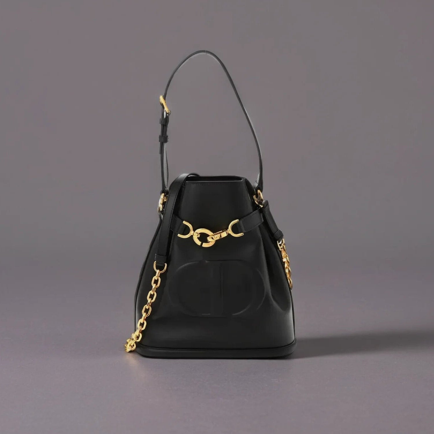 Calfskin CD Embossed Medium C'est Chain Bucket Bag Black