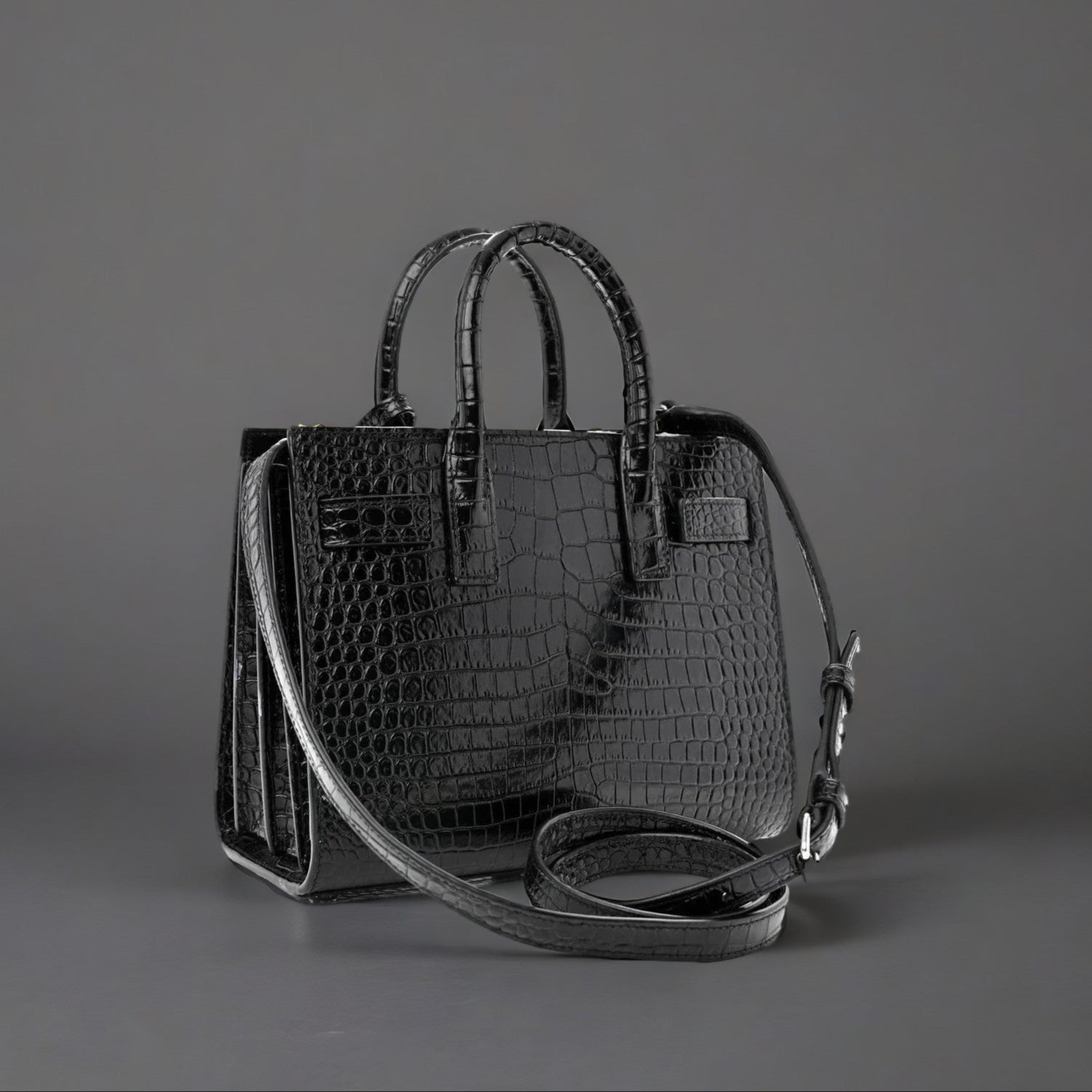 Calfskin Crocodile Embossed Nano Sac De Jour Black