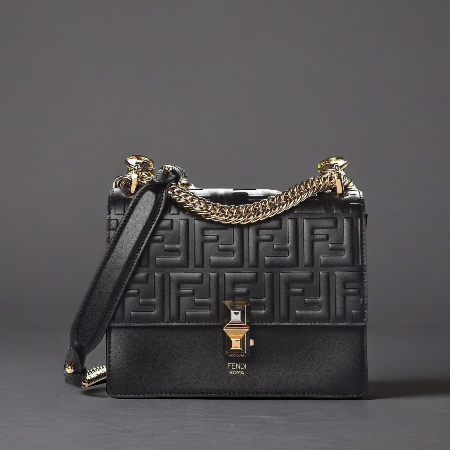 Calfskin FF 1974 Embossed Small Kan I Shoulder Bag Black