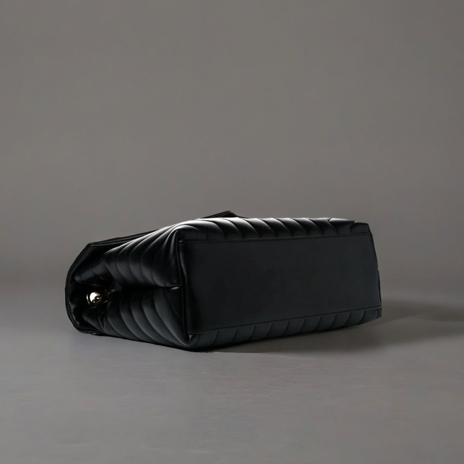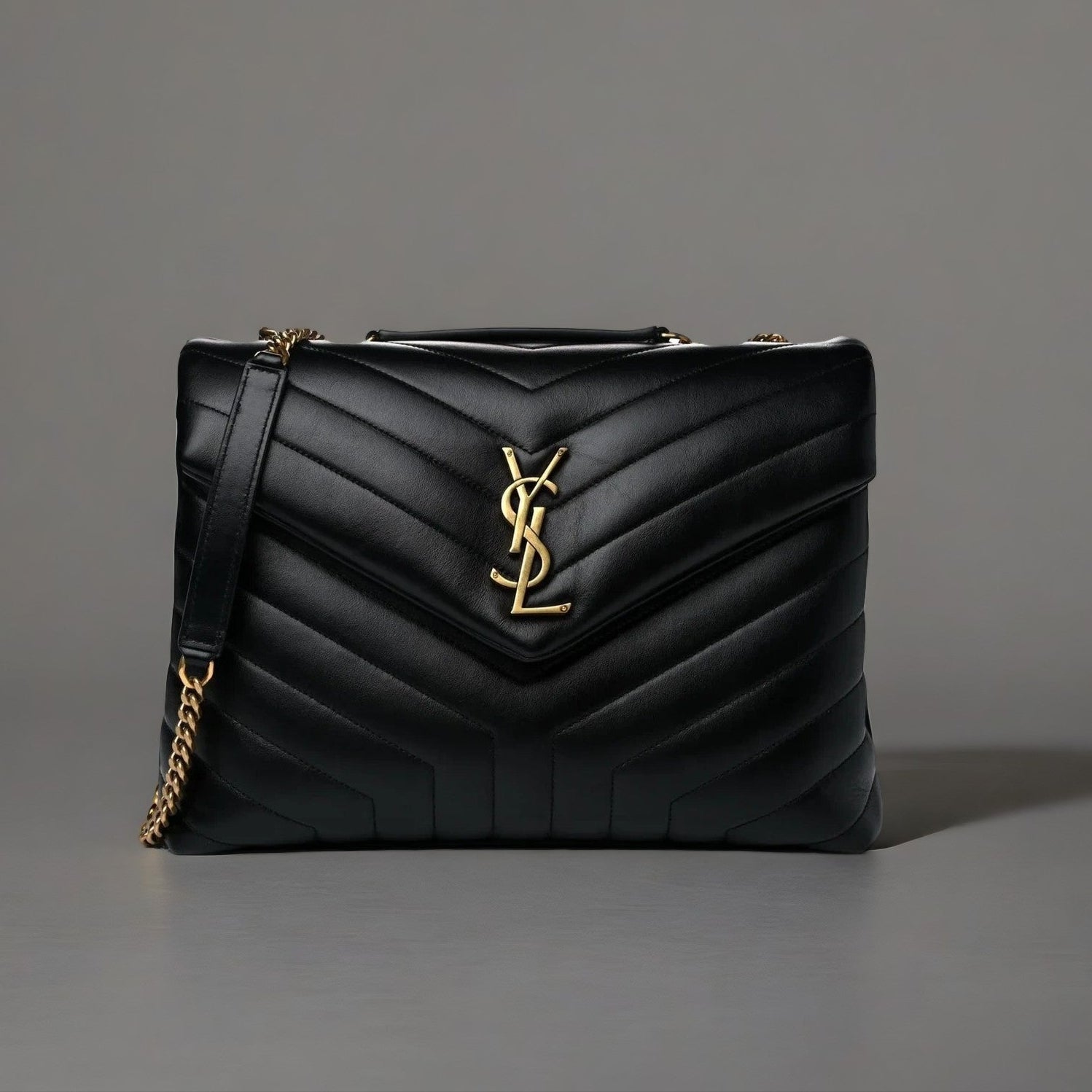 Calfskin Y Quilted Monogram Medium Loulou Chain Satchel Black