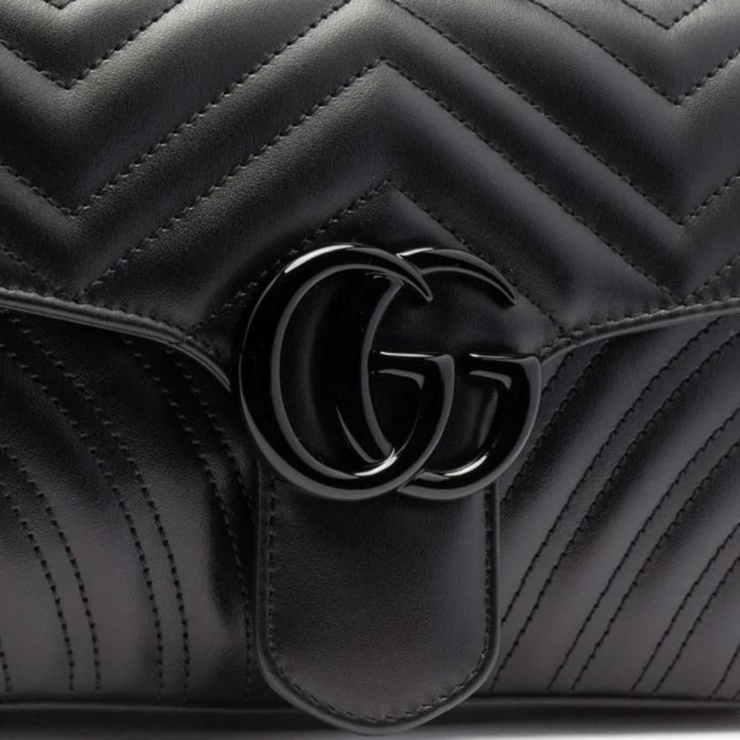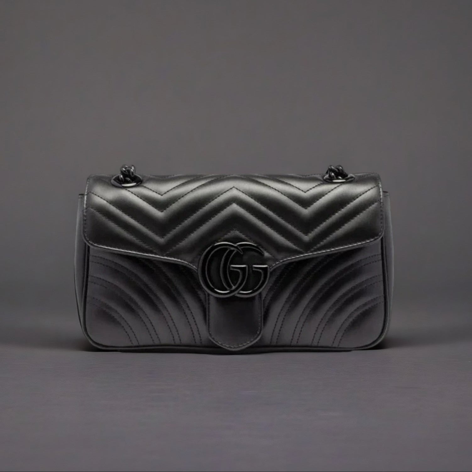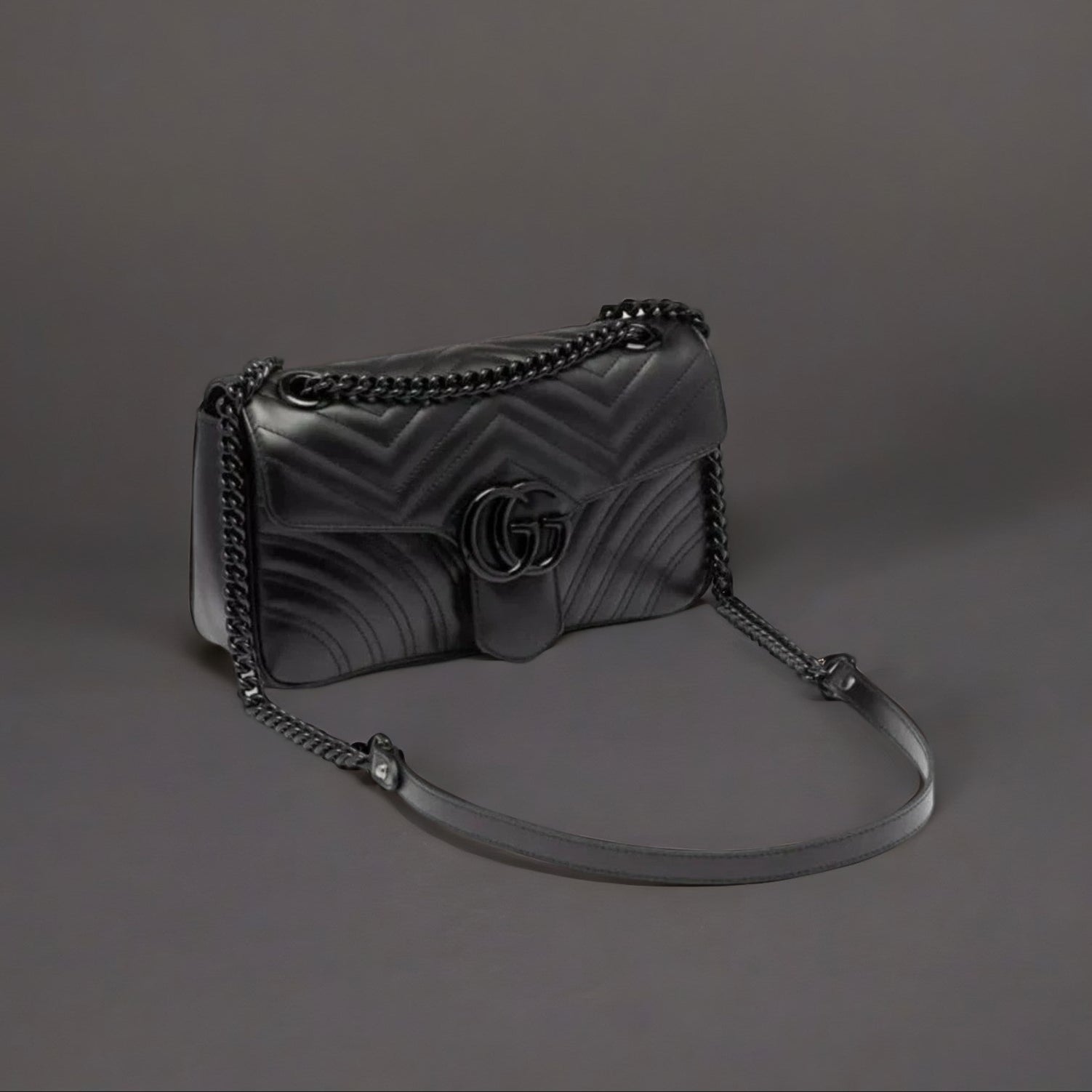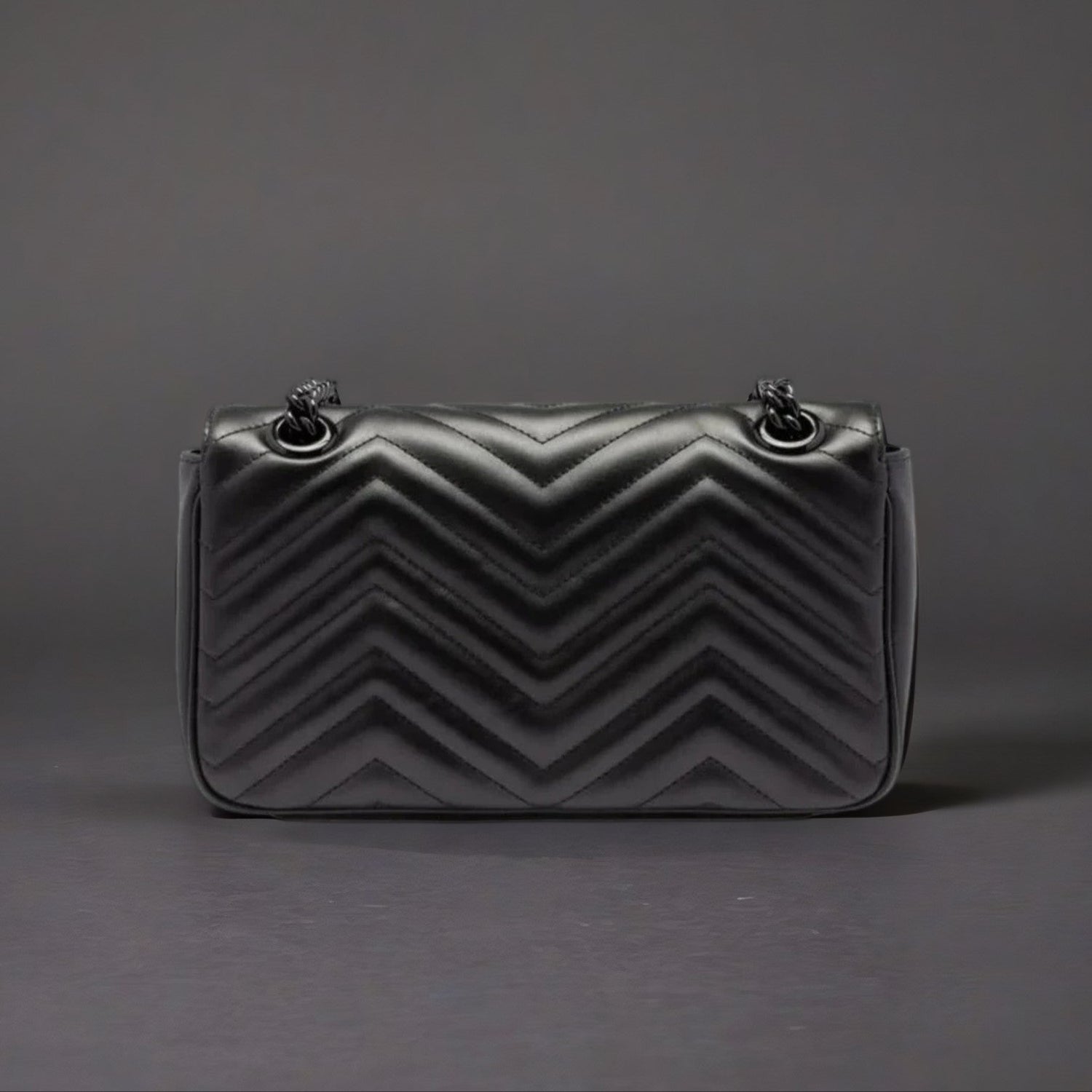 houlder bag realized in quilted leather enriched by metal GG detail at the front and heart shaped detail at the back. Metal chain shoulder strap with tonal leather shoulder pad that can be worn single or double - Press-stud closure under the flap - Lined interior with a patch pocket.