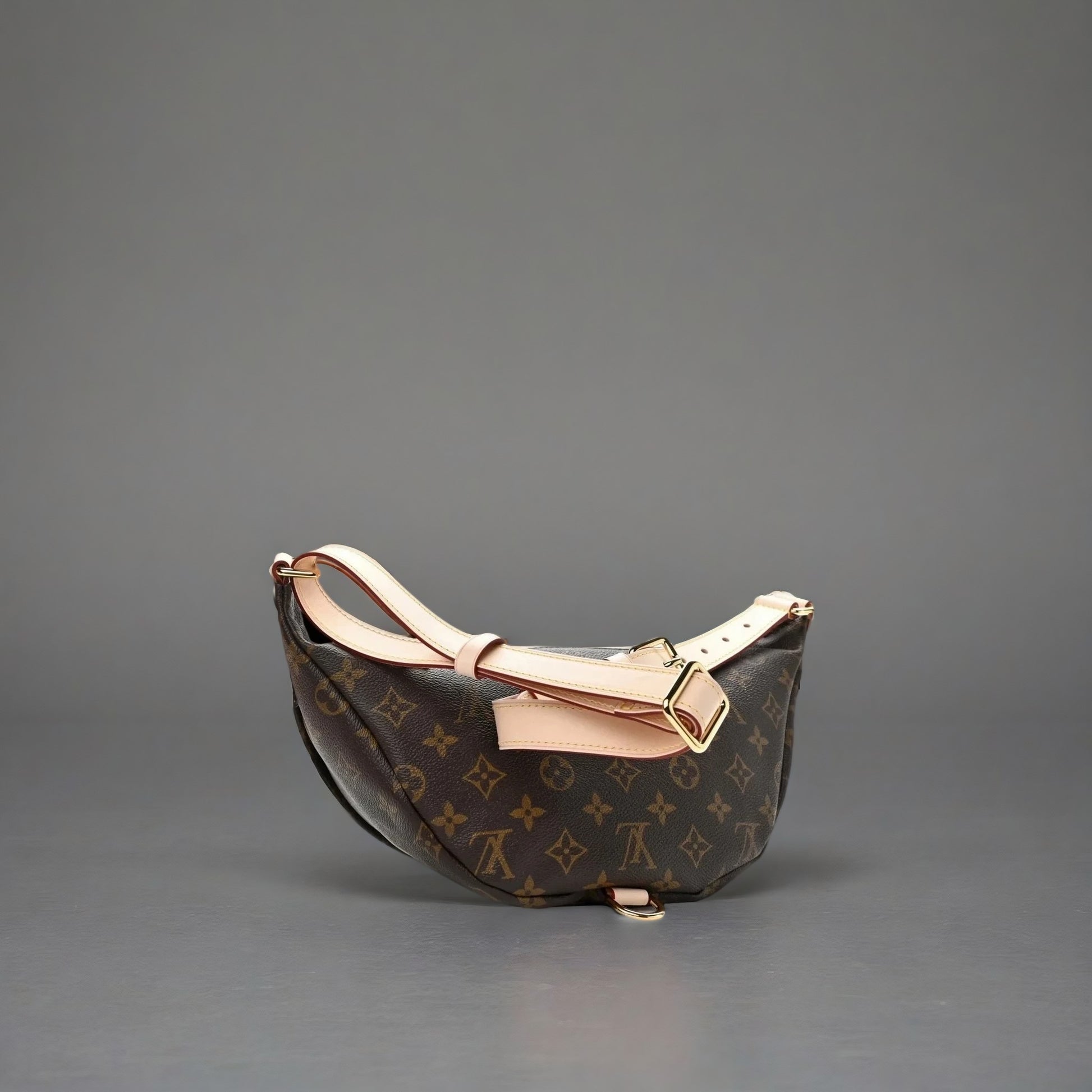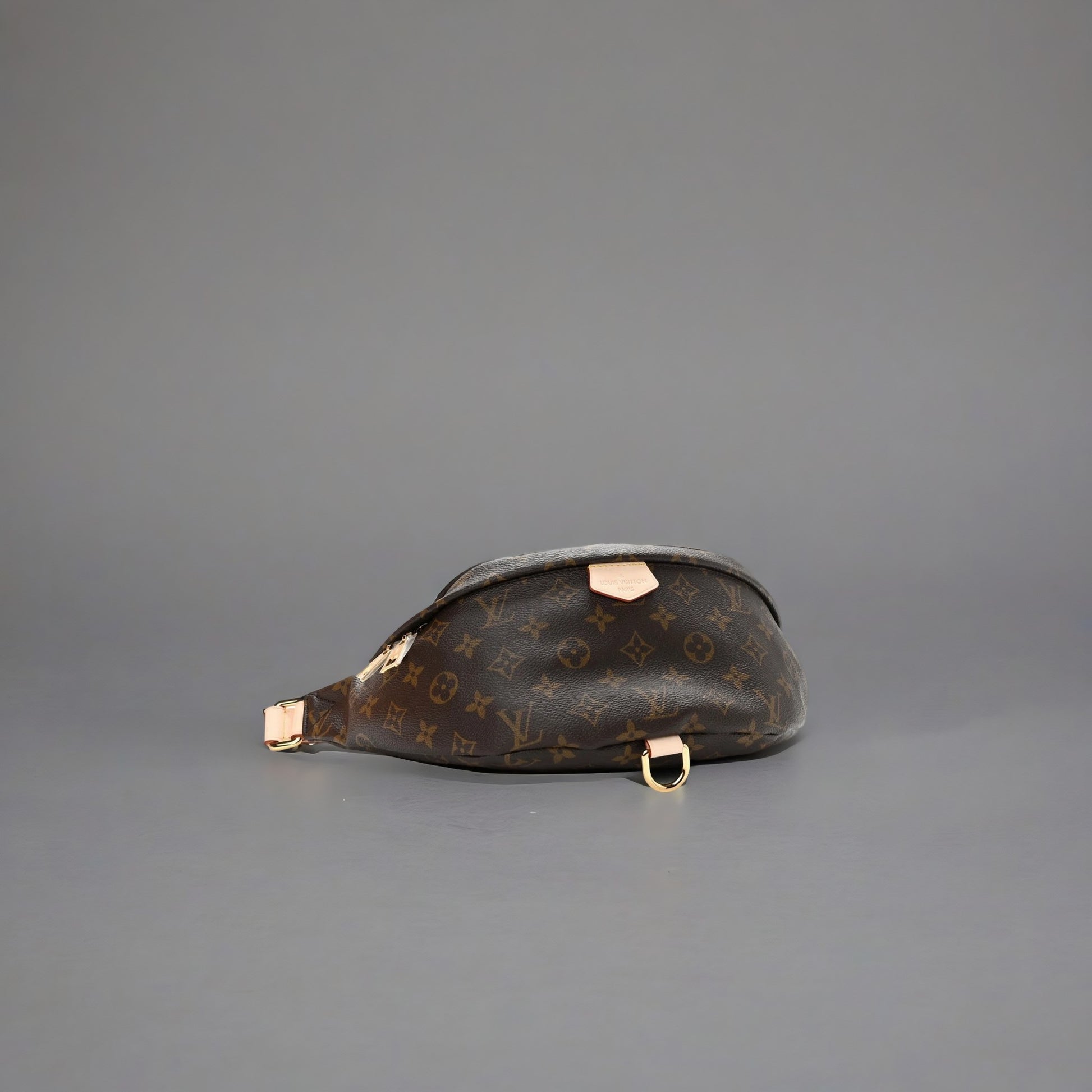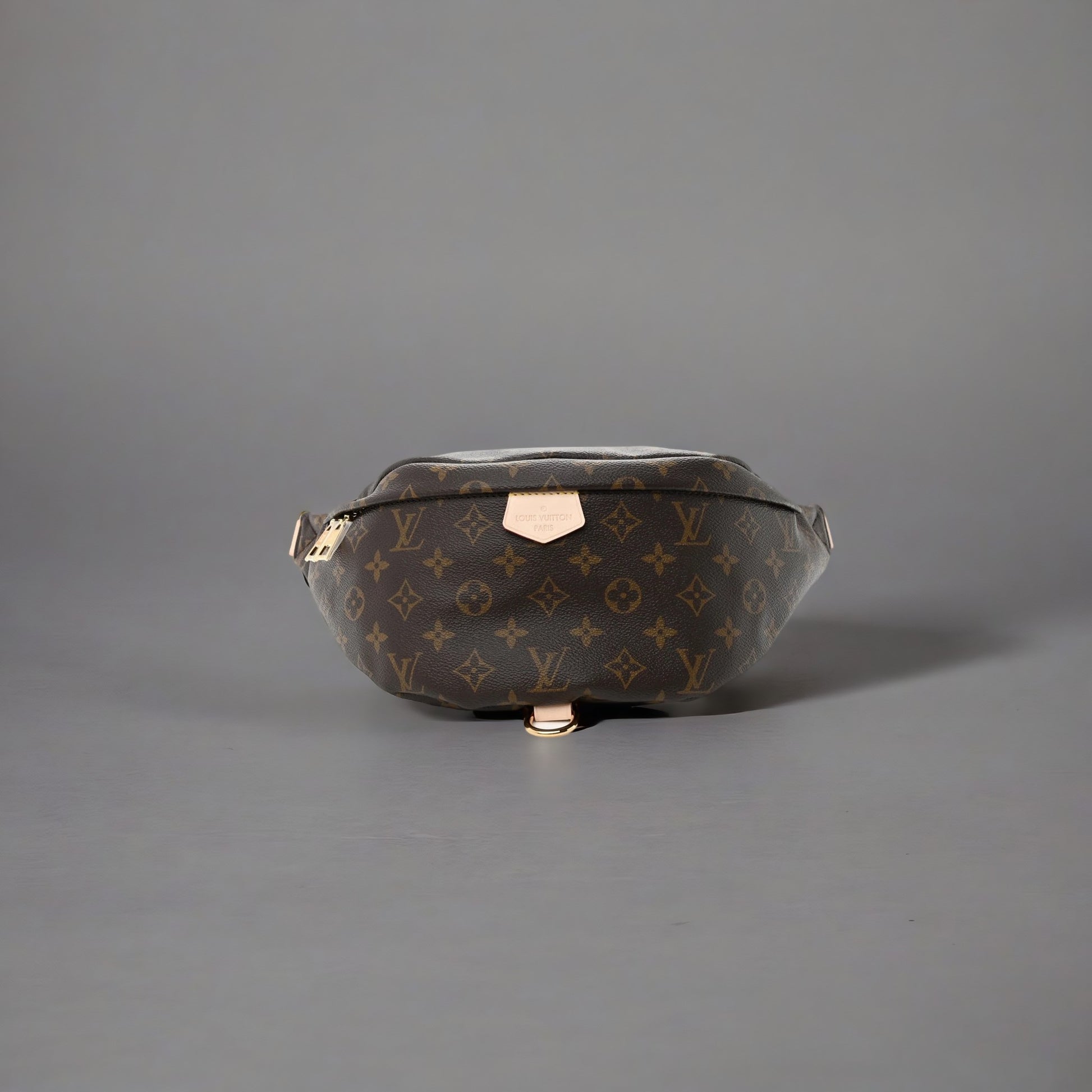 This is an authentic LOUIS VUITTON Monogram Bumbag. This stylish belt bag is created out of traditional Louis Vuitton monogram on toile canvas. The bag features a vachetta cowhide leather top handle, an adjustable waist strap, and a rear zipper pocket. The main zipper opens to a black fabric interior.