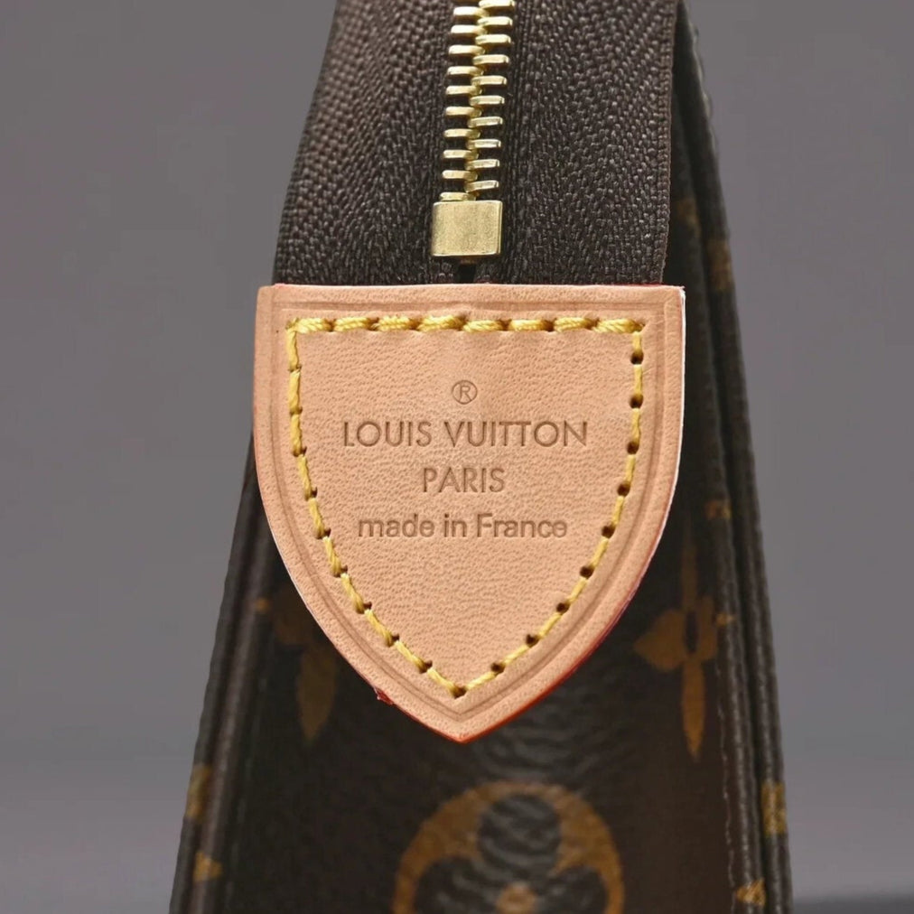 This is an authentic LOUIS VUITTON Monogram Toiletry Pouch 19. This small cosmetic pouch is crafted of classic Louis Vuitton monogram coated canvas in brown. The pouch features a polished brass top zipper that opens to a beige leather-like interior.