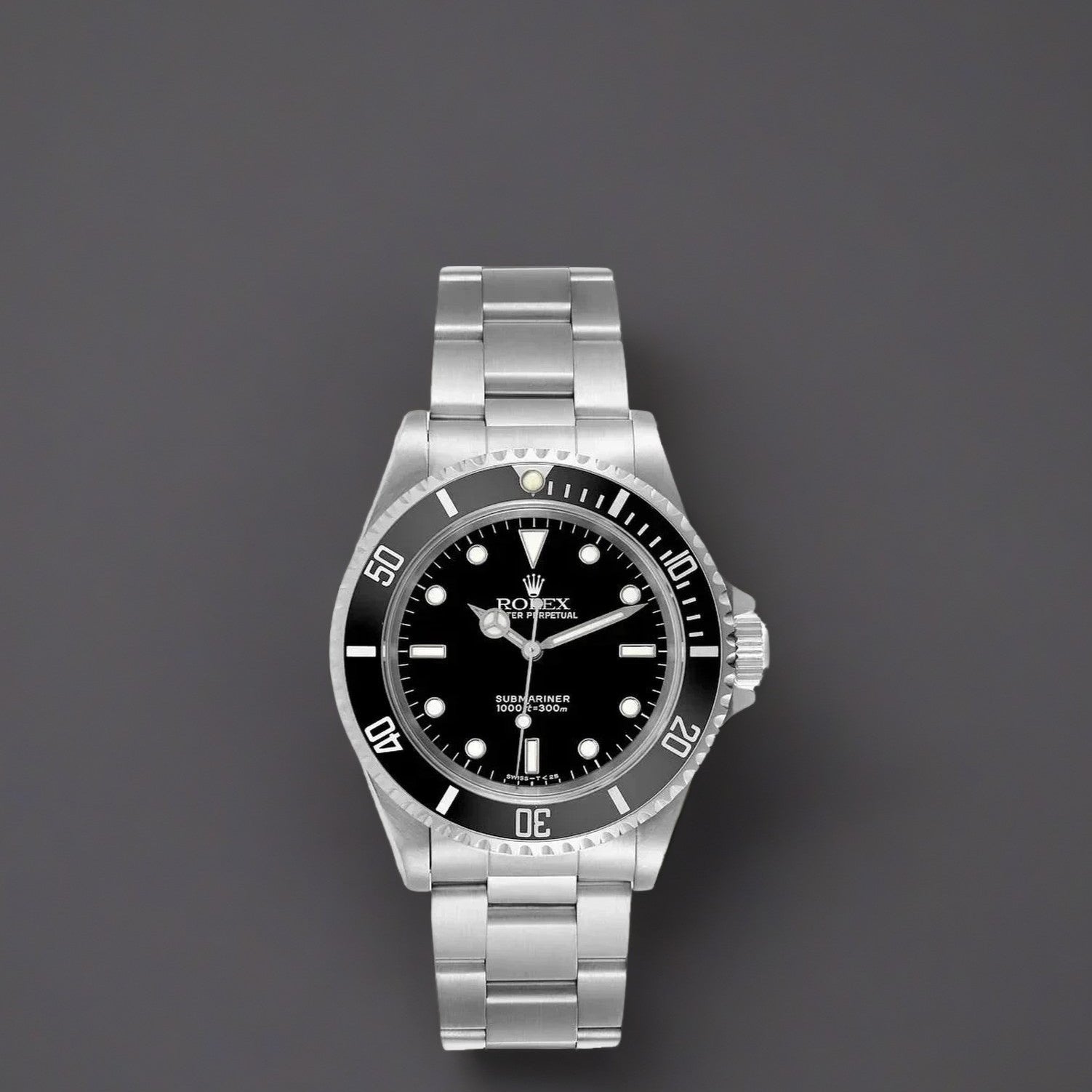 This is an authentic ROLEX Stainless Steel 40 mm Oyster Perpetual Submariner Date Watch Black. The watch is crafted of stainless steel and features a black dial with white hour markers and hands, date indicator, sapphire crystal, black uni-directional bezel, oyster link bracelet, and an automatic Swiss movement.