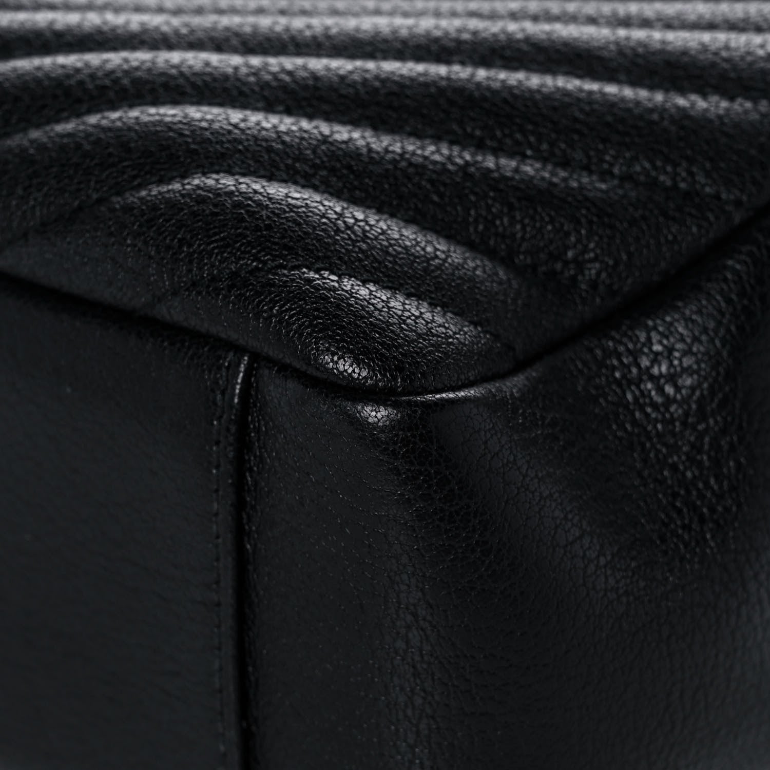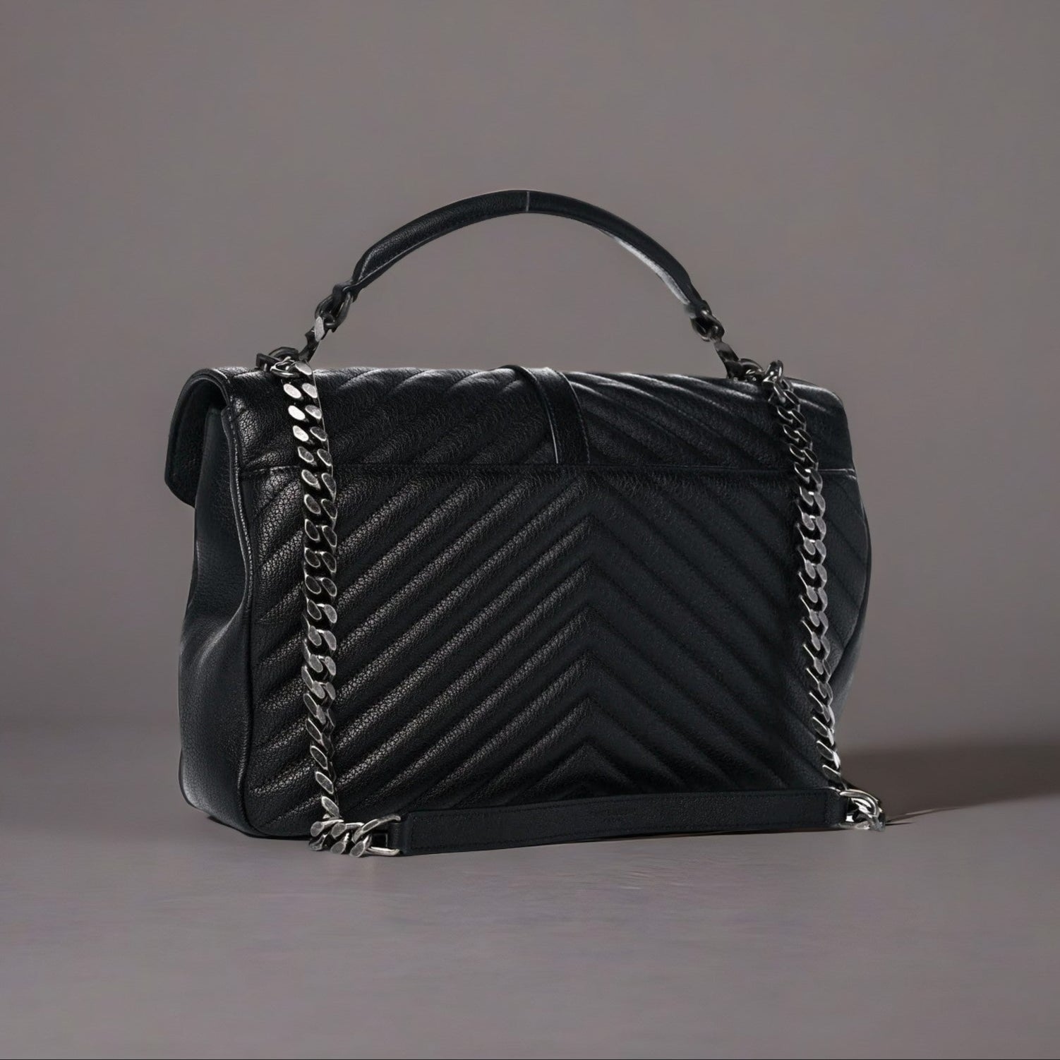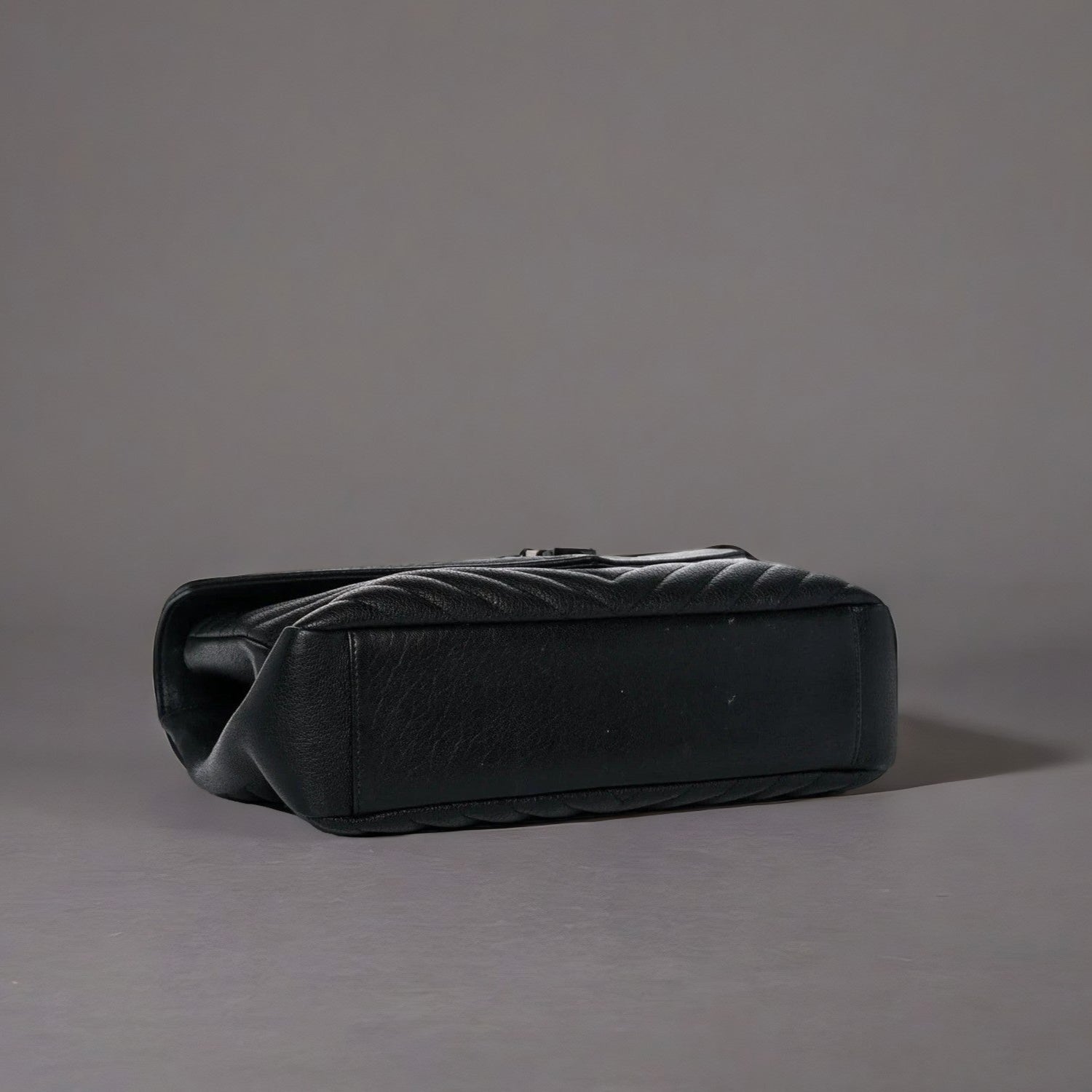 Sheepskin Matelasse Chevron Monogram Large College Satchel Black